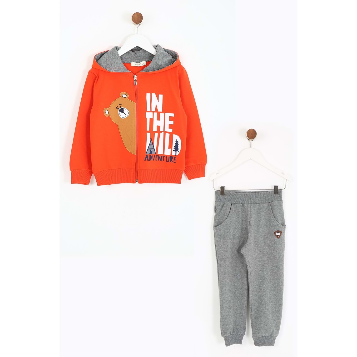 Erkek Çocuk Eşofman Takımı Ayıcık Nakışlı - Oranj (98/122)