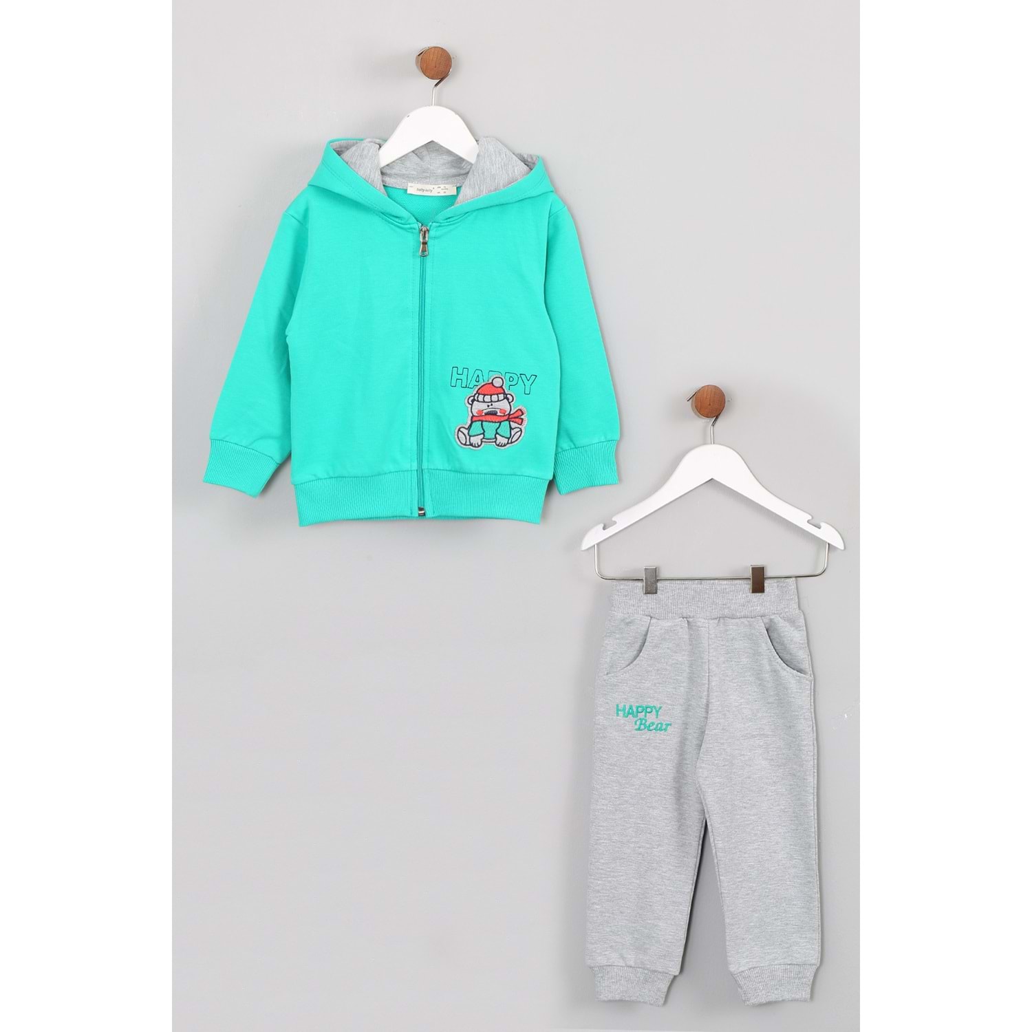 Erkek Çocuk Happy Nakışlı Eşofman Takımı - Açık Yeşil (86/110)