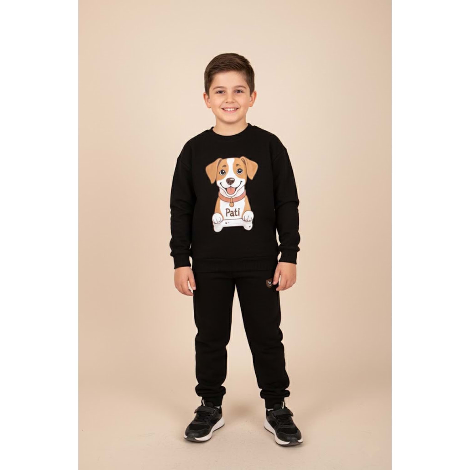Erkek Çocuk Köpek Baskılı Takım - Siyah - (116/140)