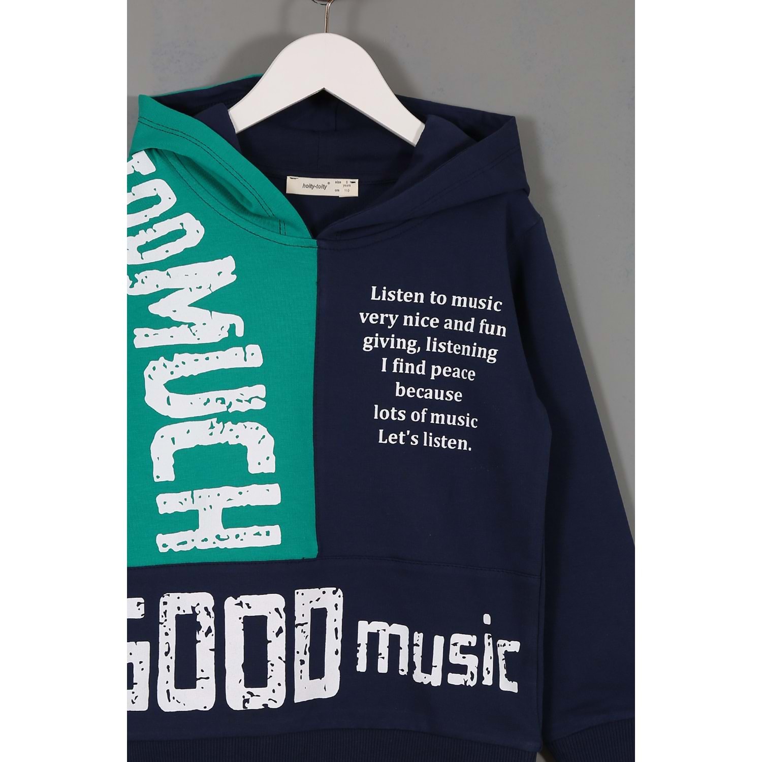 Erkek Çocuk Sweatshirt Good Music Baskılı - Lacivert-Mint Yeşili (110/134)