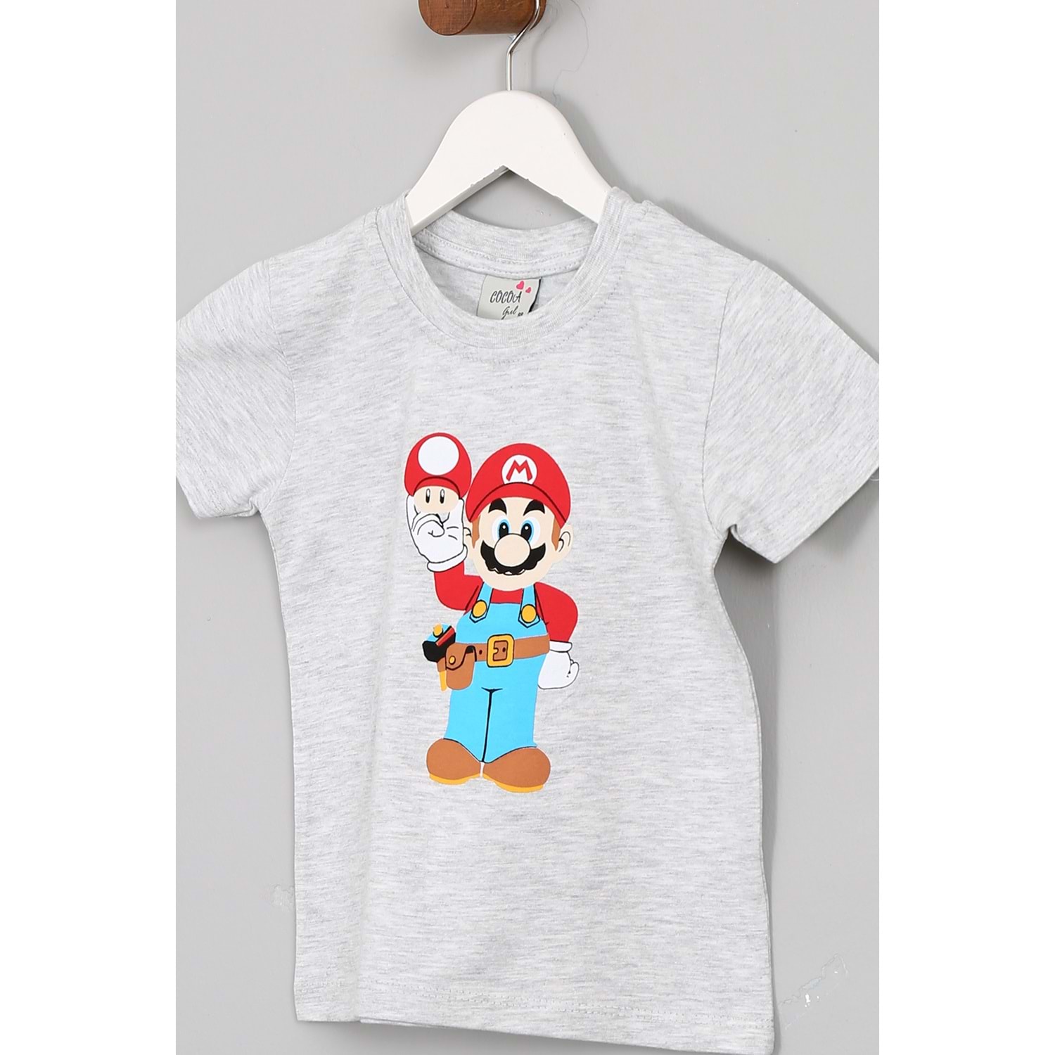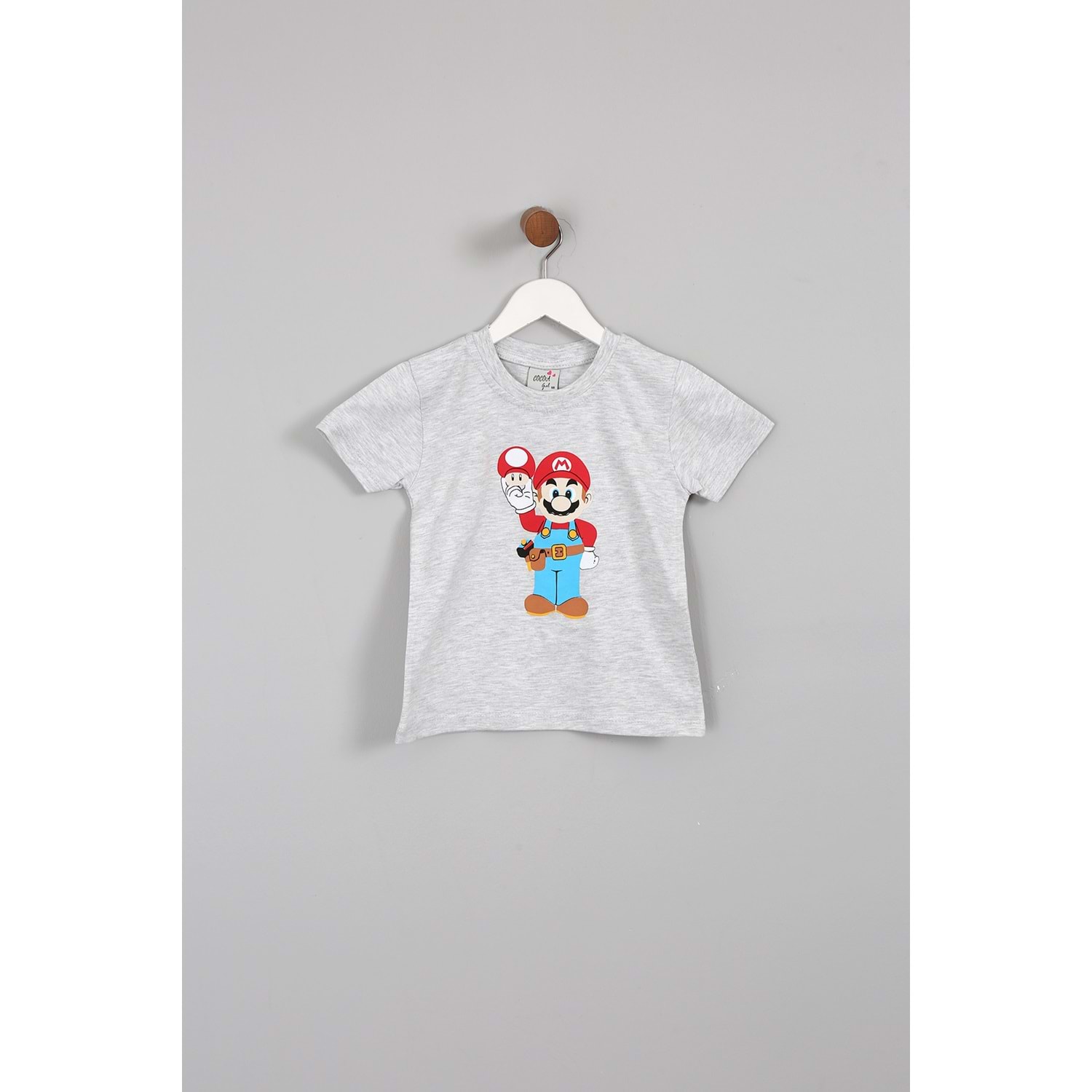 Erkek Çocuk Tişört Mario Baskılı - Gri (98/122)