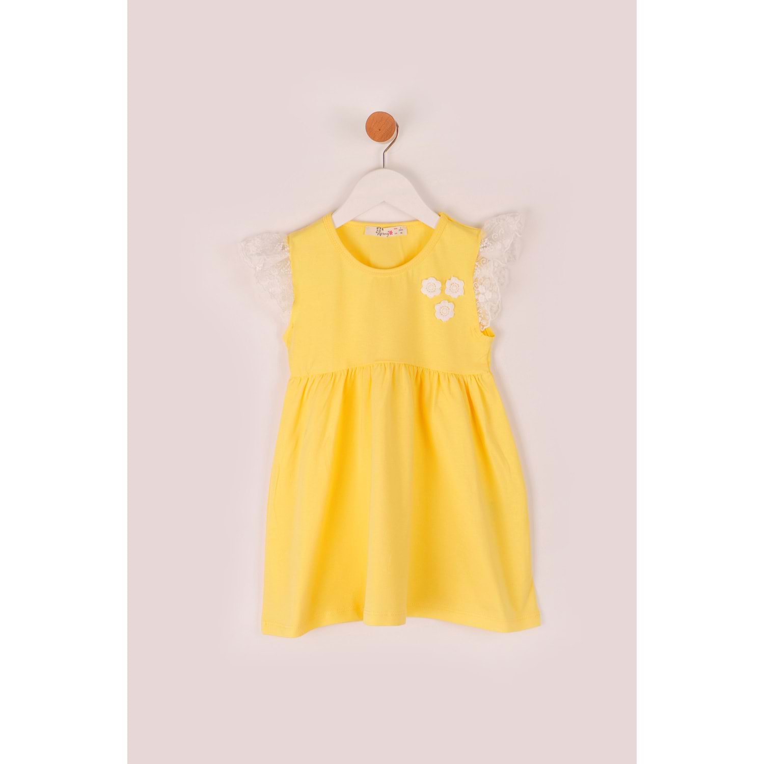 Kız Çocuk Elbise Çiçekli Dantel - Sarı (98/122)