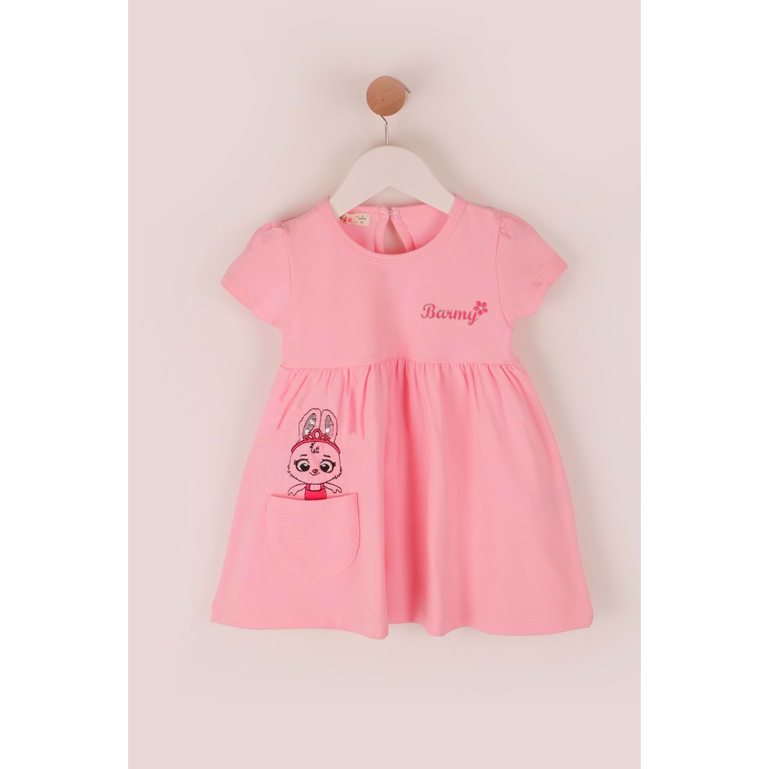 Kız Çocuk Elbise Tavşanlı Baskılı - Bebe Pembesi (74/98)