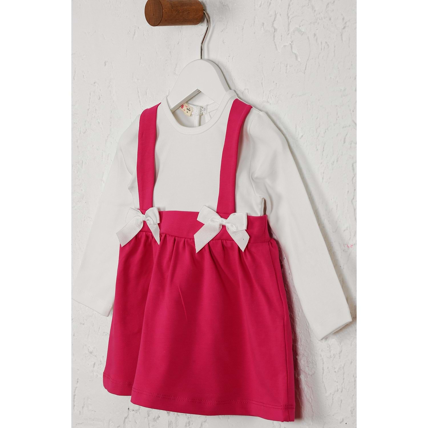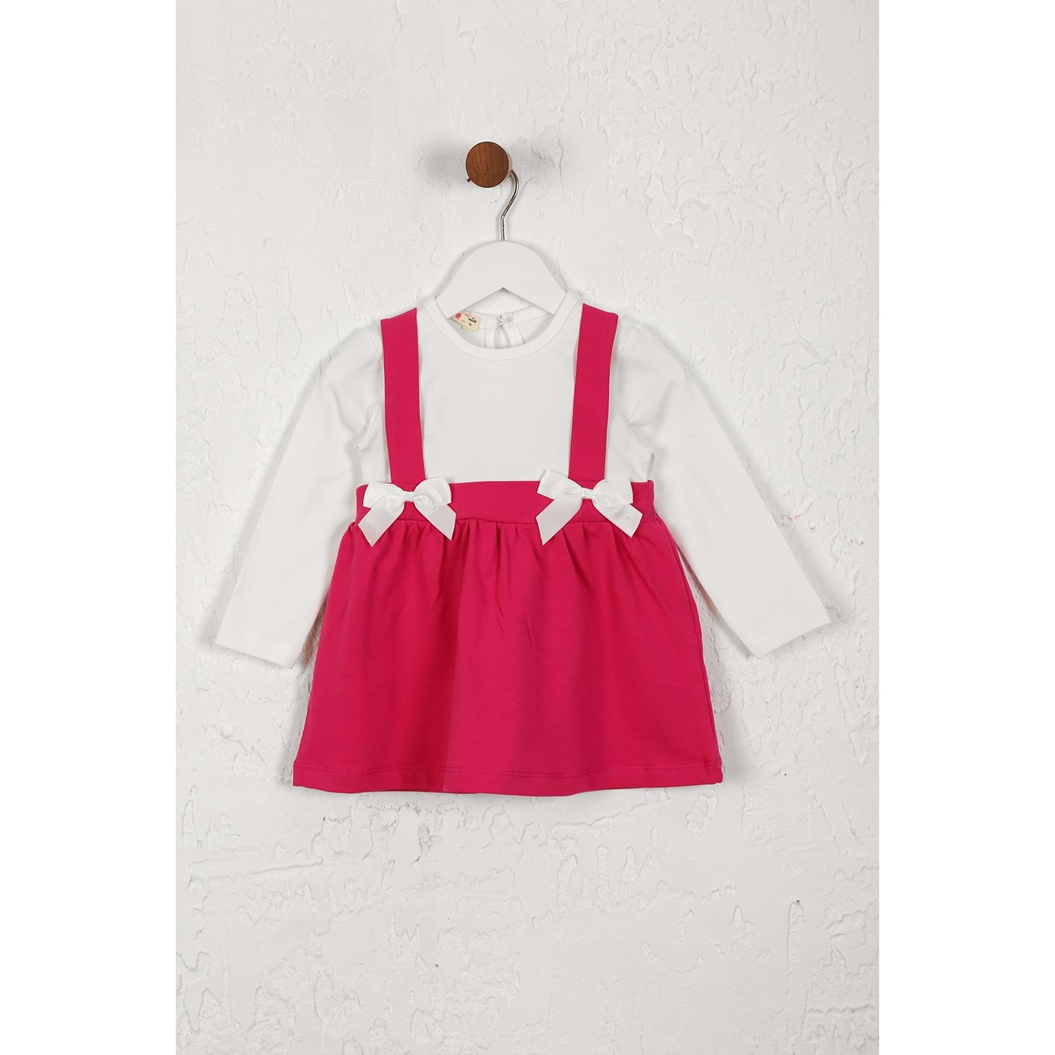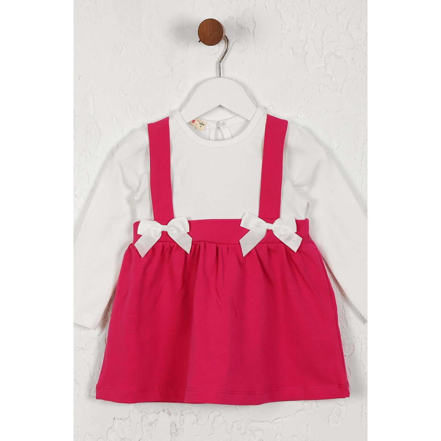 Kız Çocuk Elbise Askılı Kurdeleli - Koyu Fuşya (74/98)