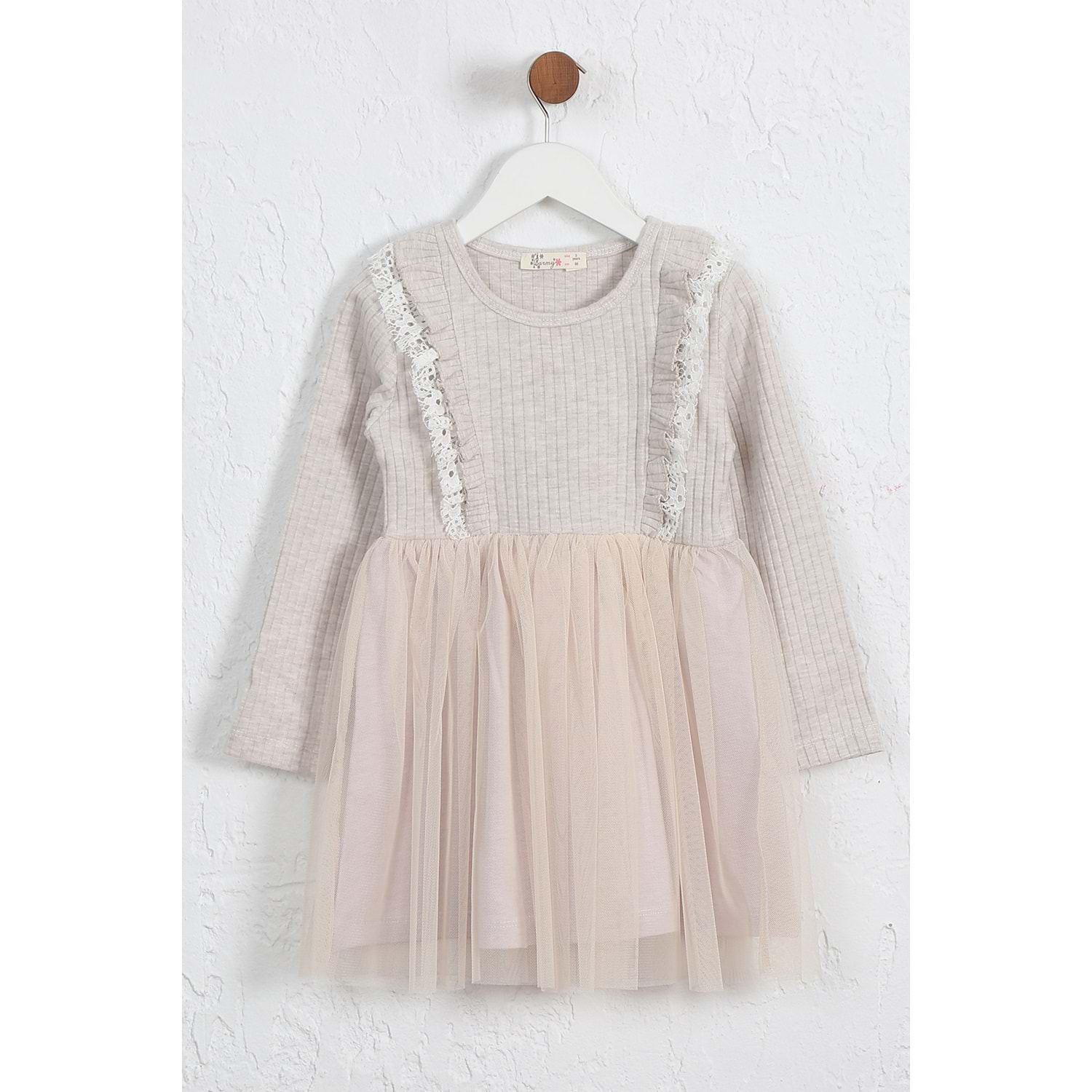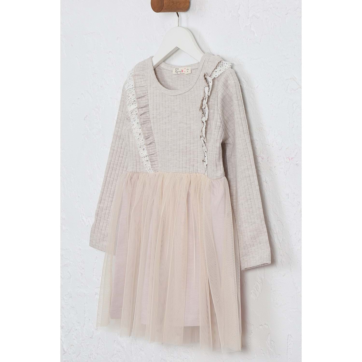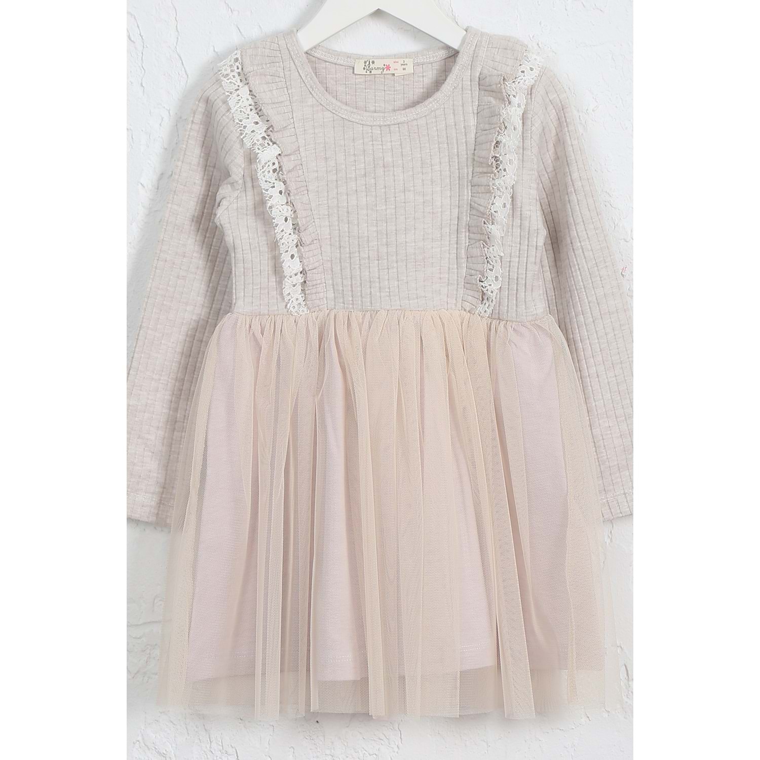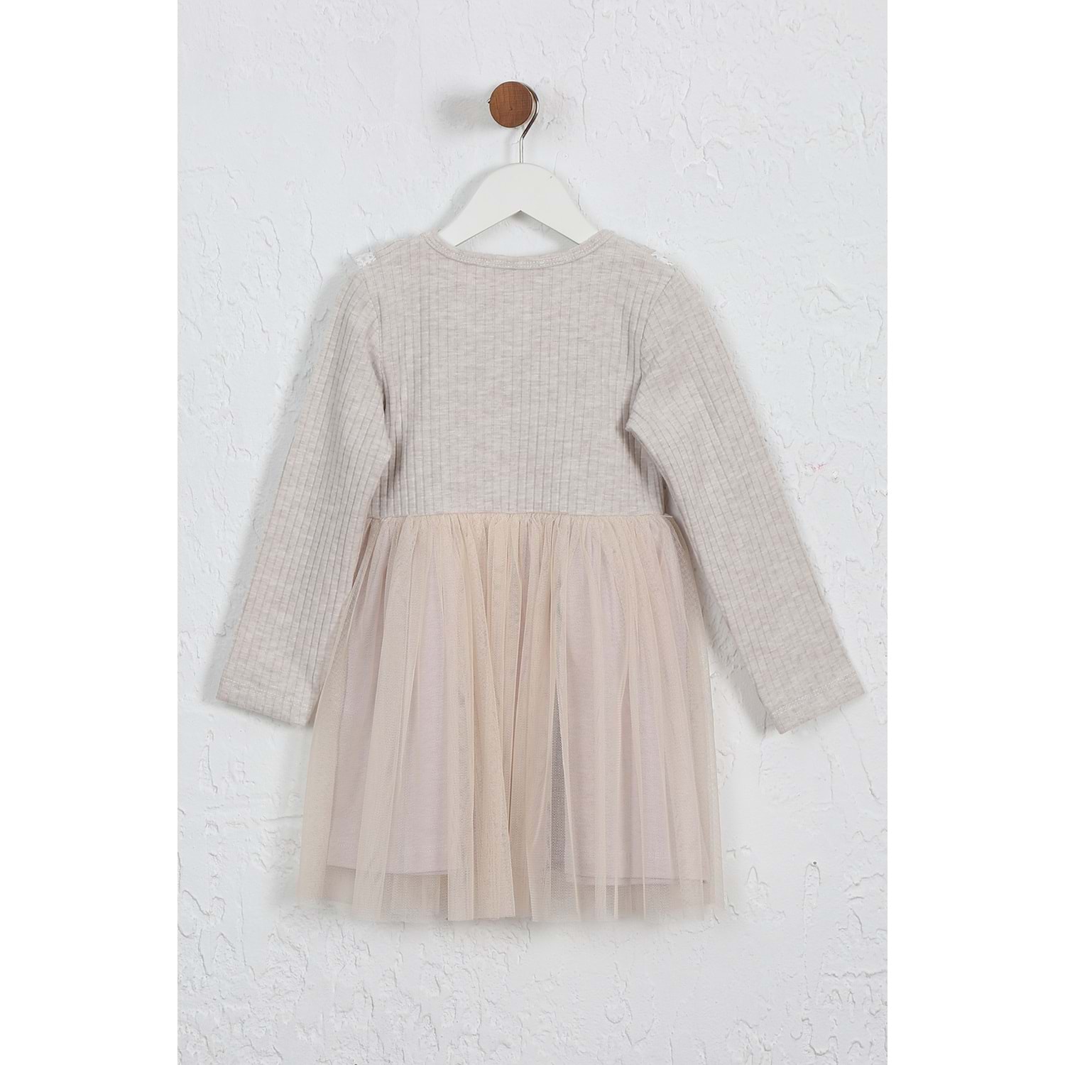Kız Çocuk Elbise Çift Fırfırlı - Kahve Melanj (98/122)