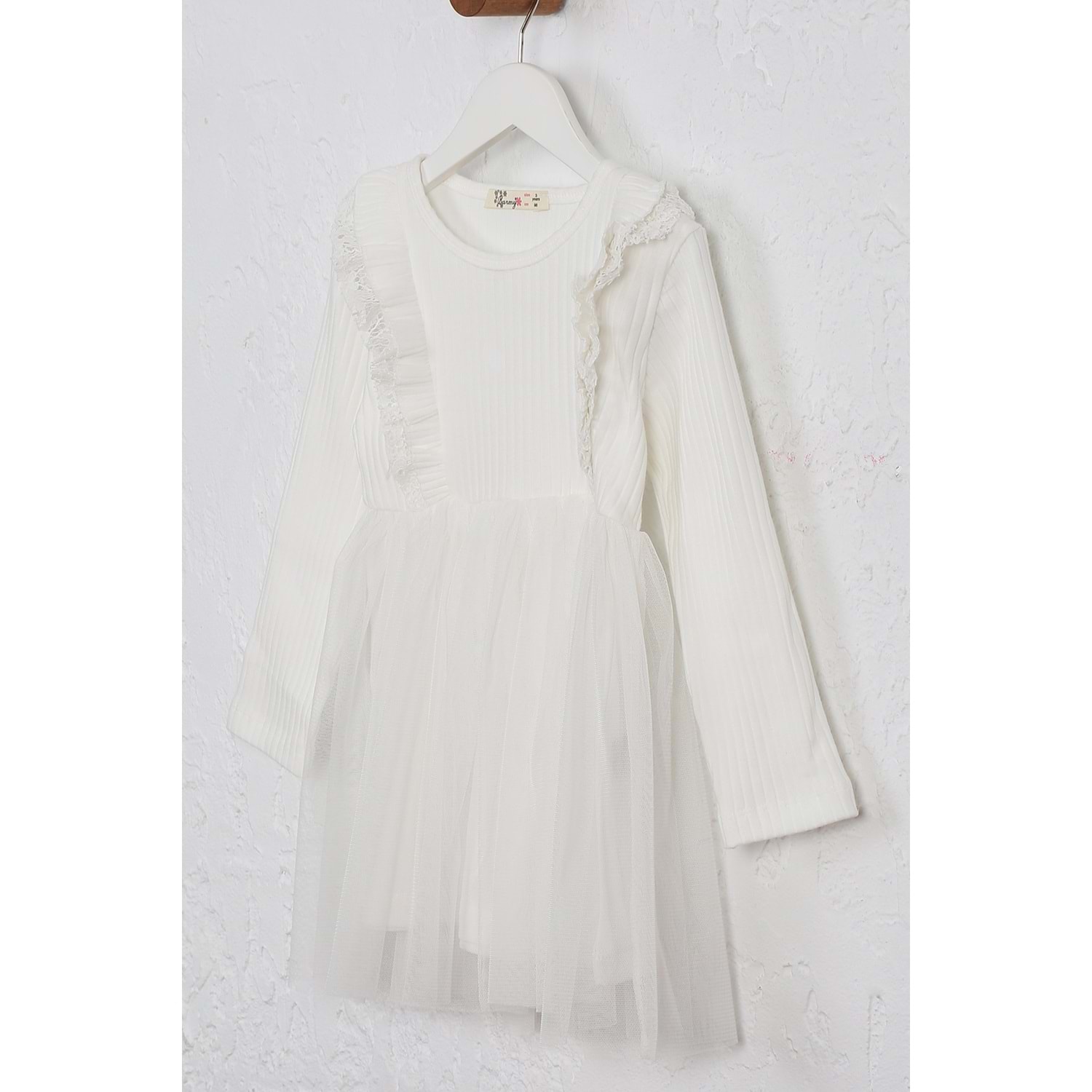 Kız Çocuk Elbise Çift Fırfırlı - Krem (98/122)