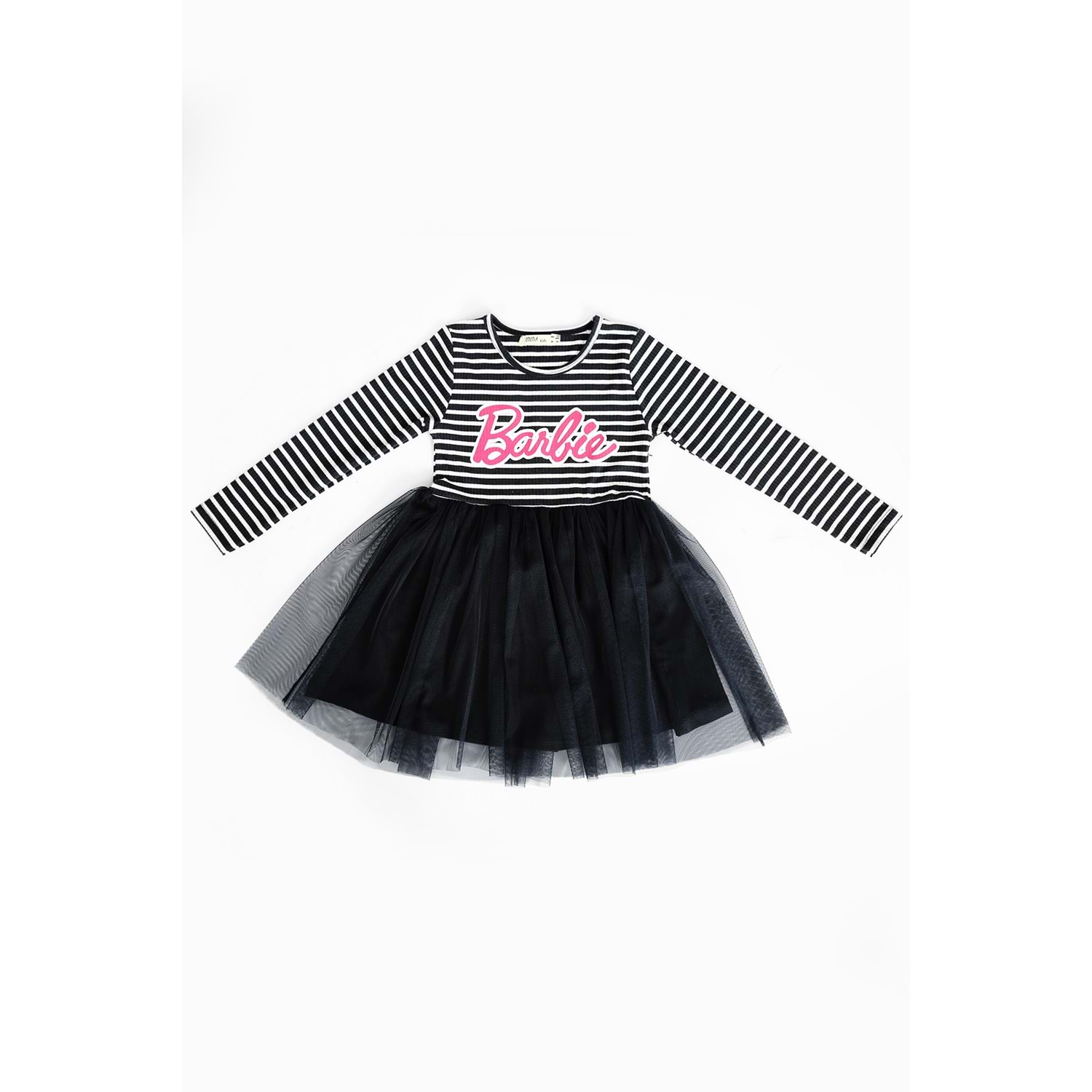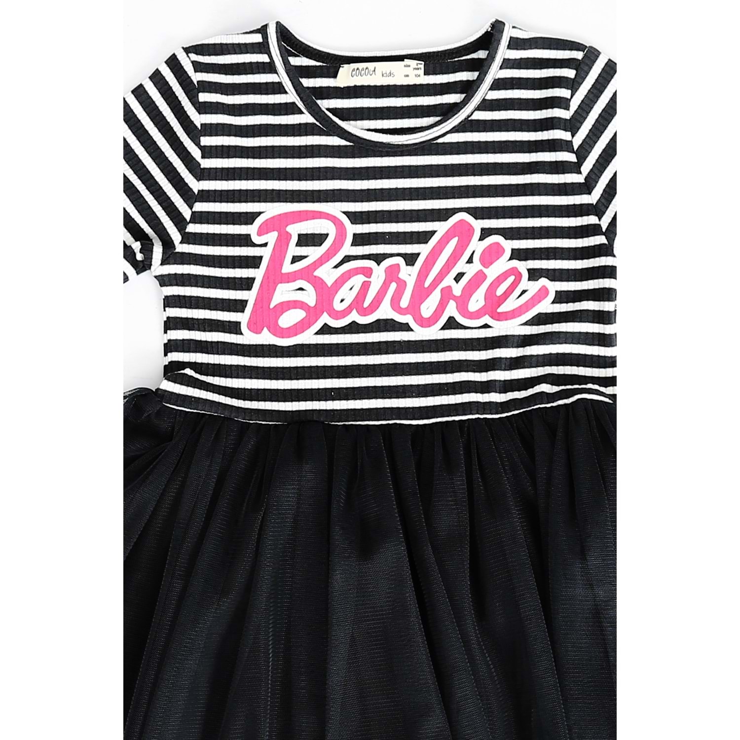 Kız Çocuk Elbise Çizgili Barbie Baskılı - Lacivert (104/134)