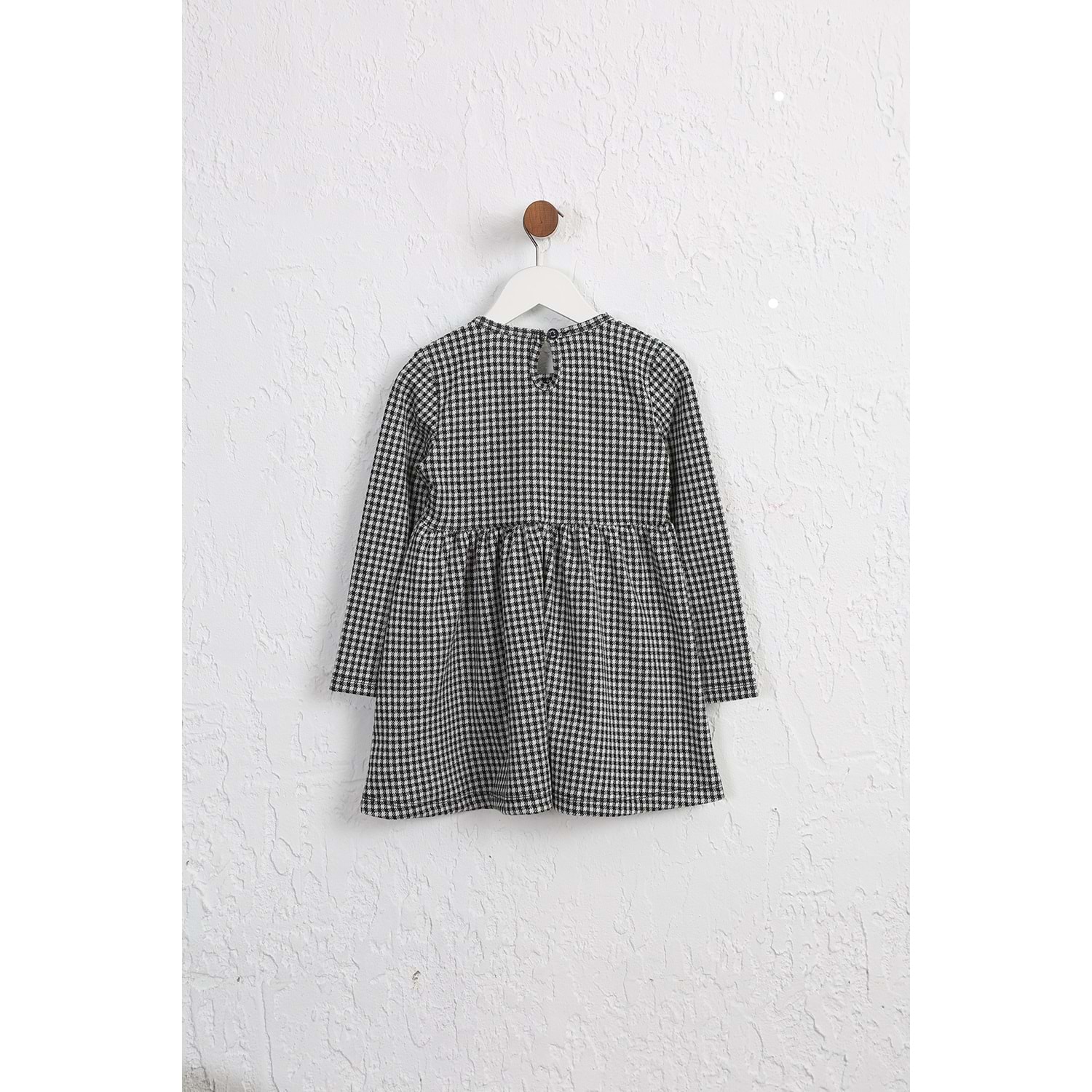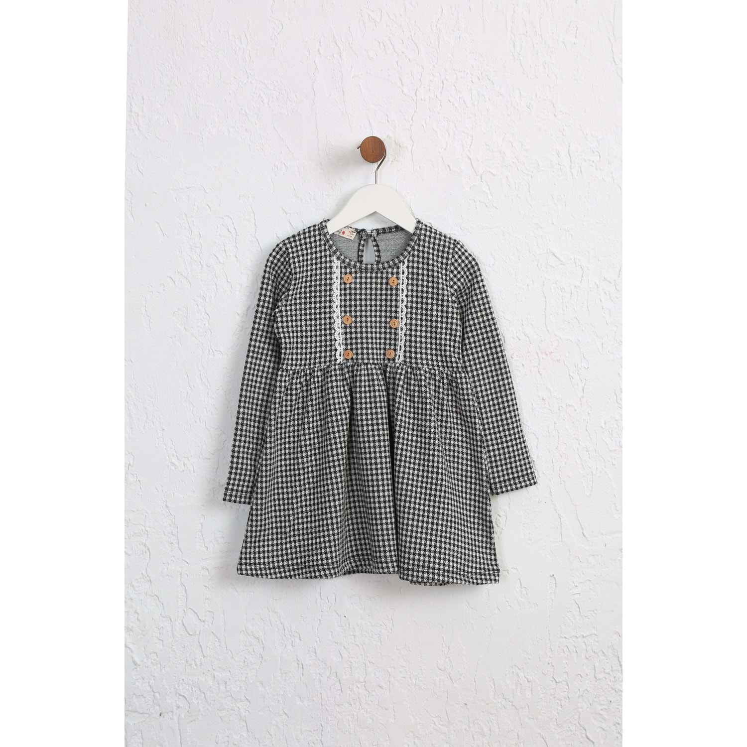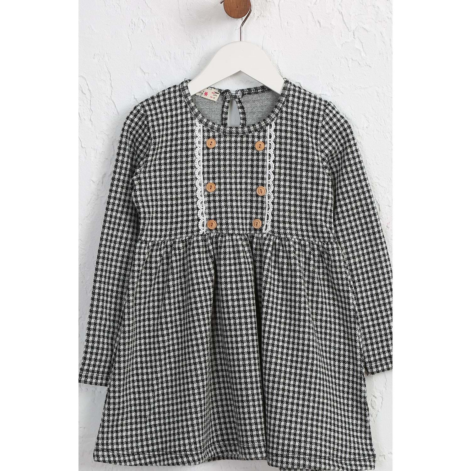 Kız çocuk Elbise Dantelli Düğmeli - Beyaz-Siyah (98/122)