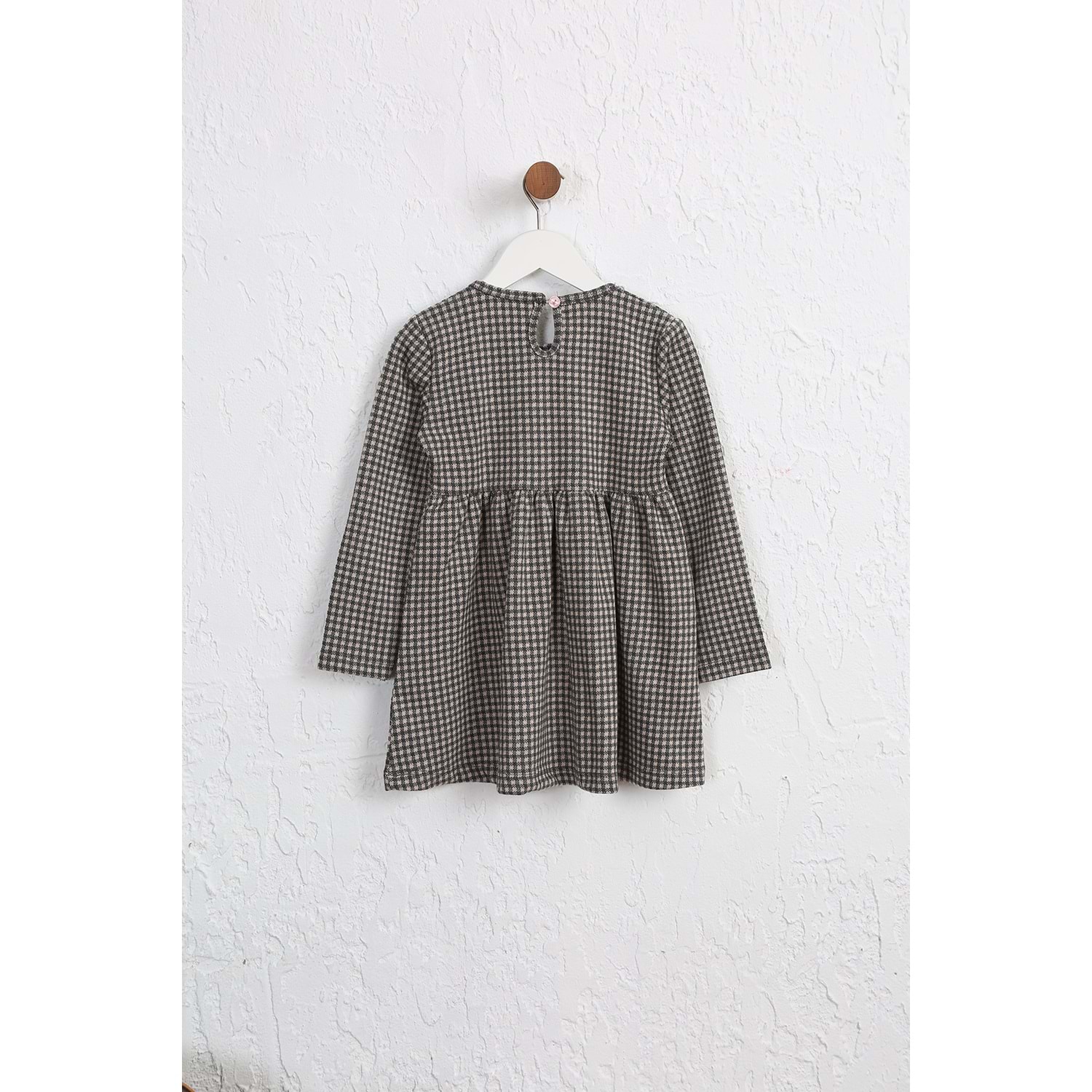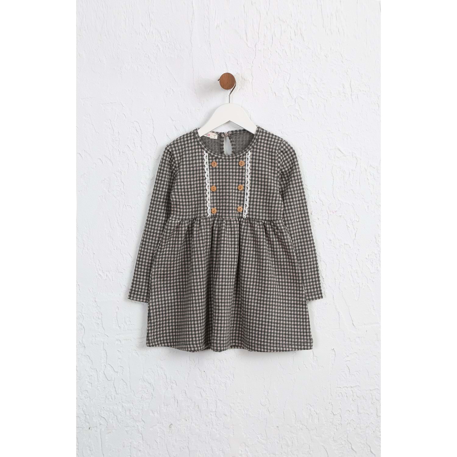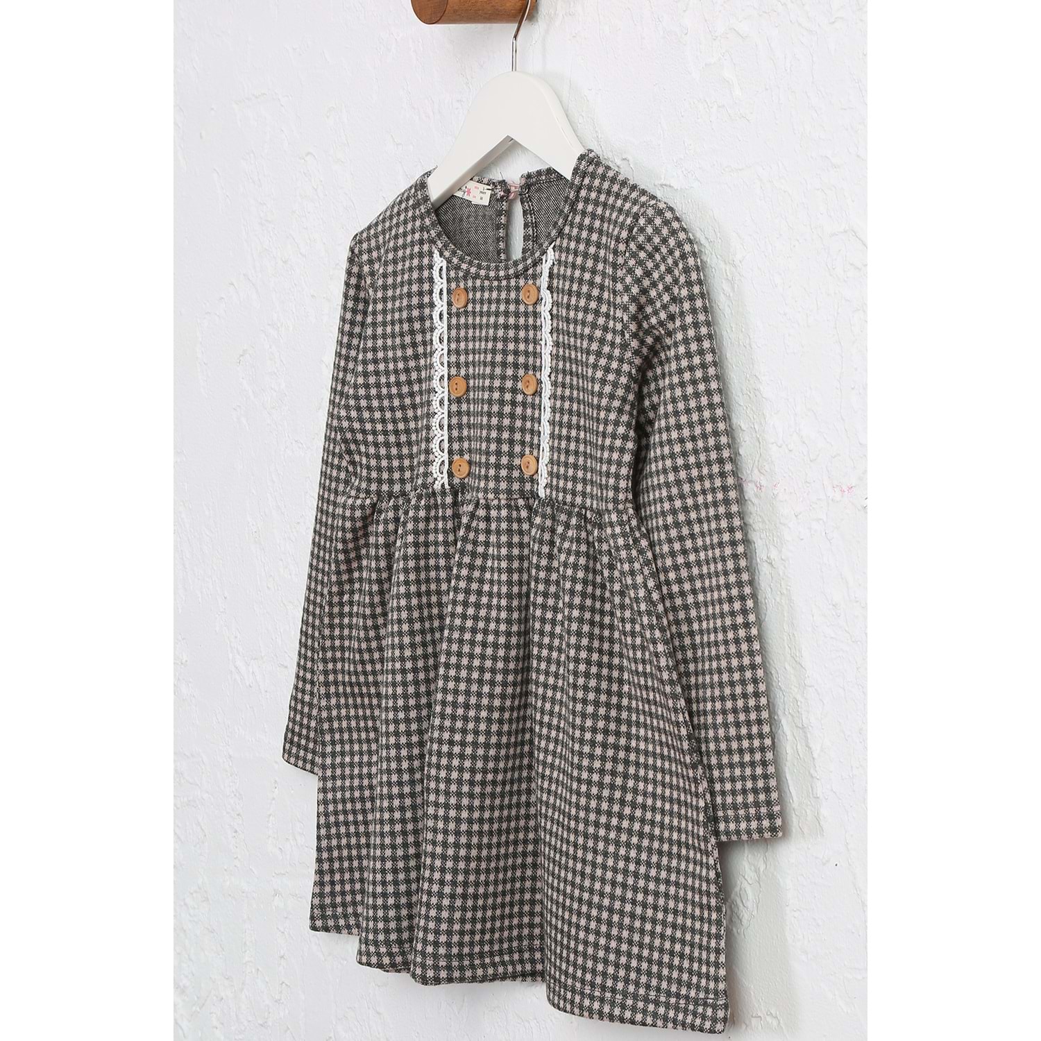 Kız çocuk Elbise Dantelli Düğmeli - Yavruağzı-Antrasit (98/122)