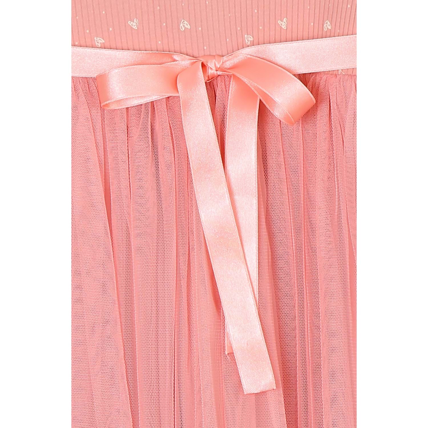 Kız Çocuk Elbise Desenli Kemerli - Gül Kurusu (98/122)