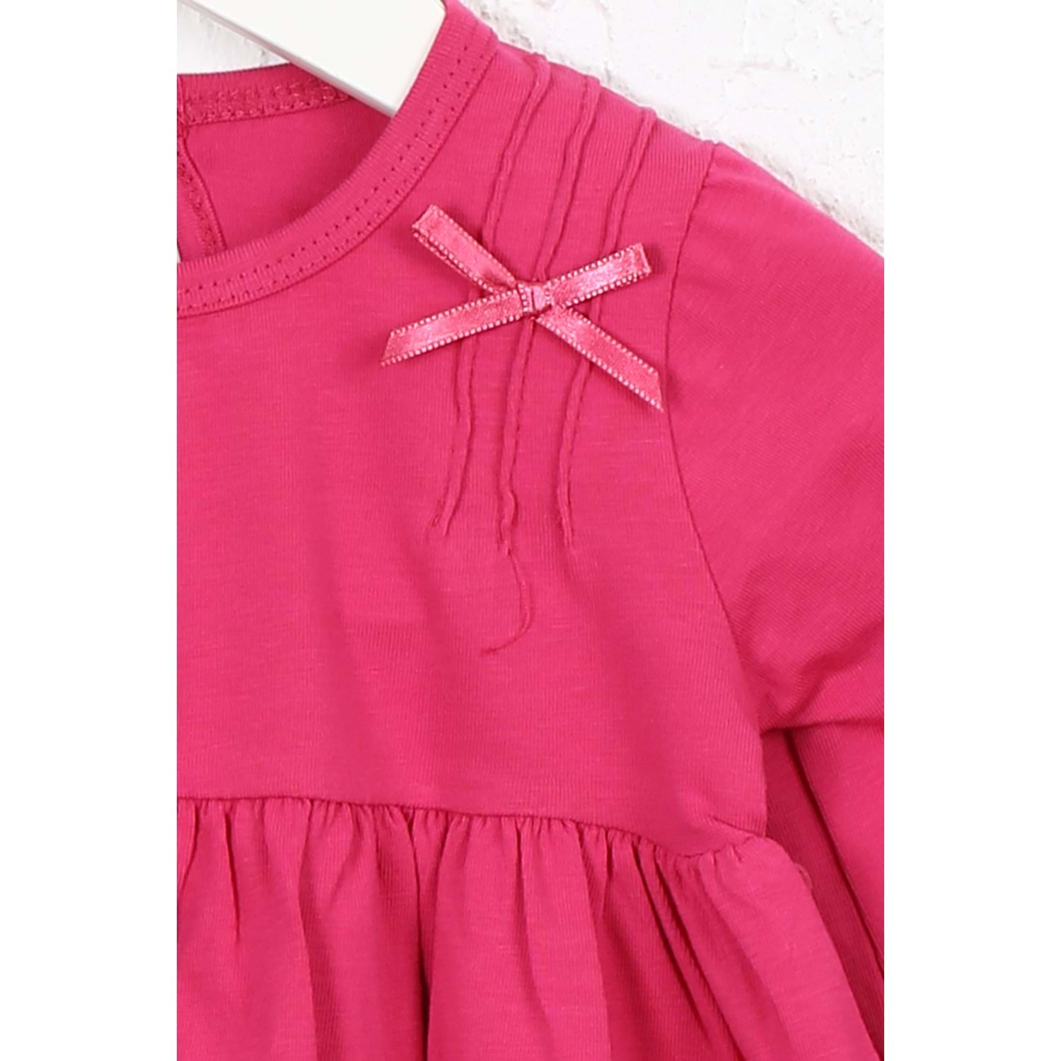 Kız Çocuk Elbise Hazır Fiyonklu - Koyu Fuşya (74/98)