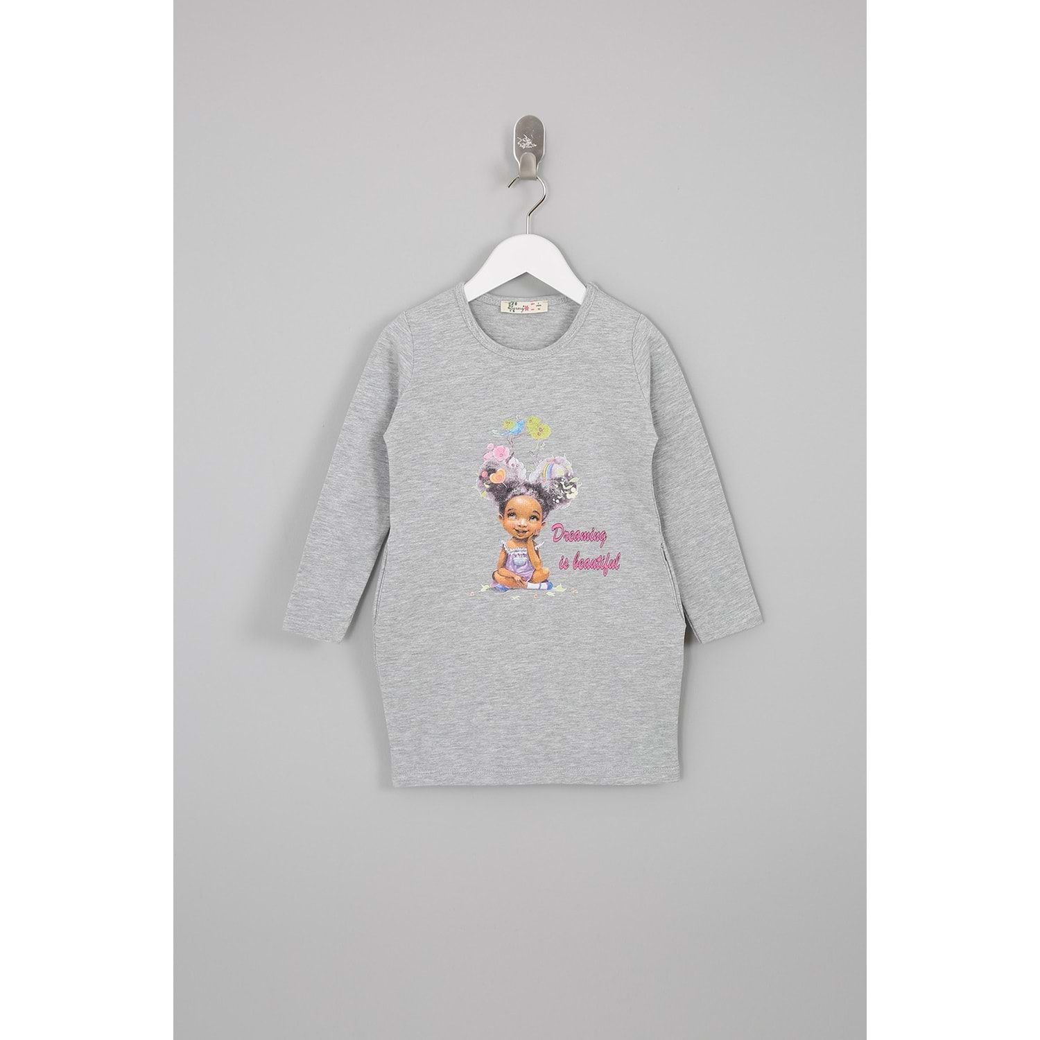 Kız Çocuk Elbise Kız Baskılı - Gri (92/116)