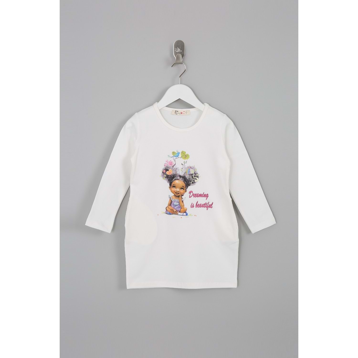Kız Çocuk Elbise Kız Baskılı - Krem (92/116)