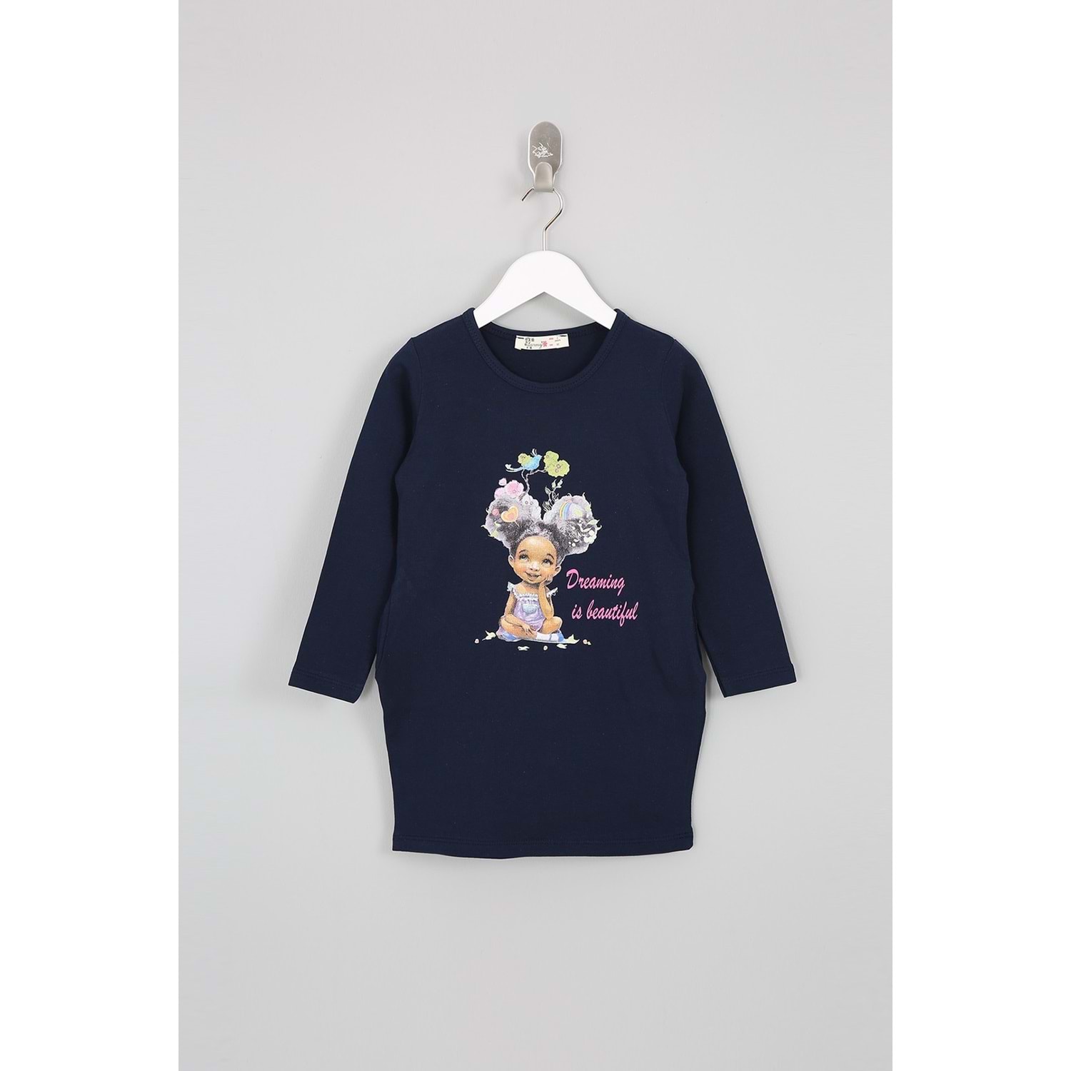 Kız Çocuk Elbise Kız Baskılı - Lacivert (92/116)