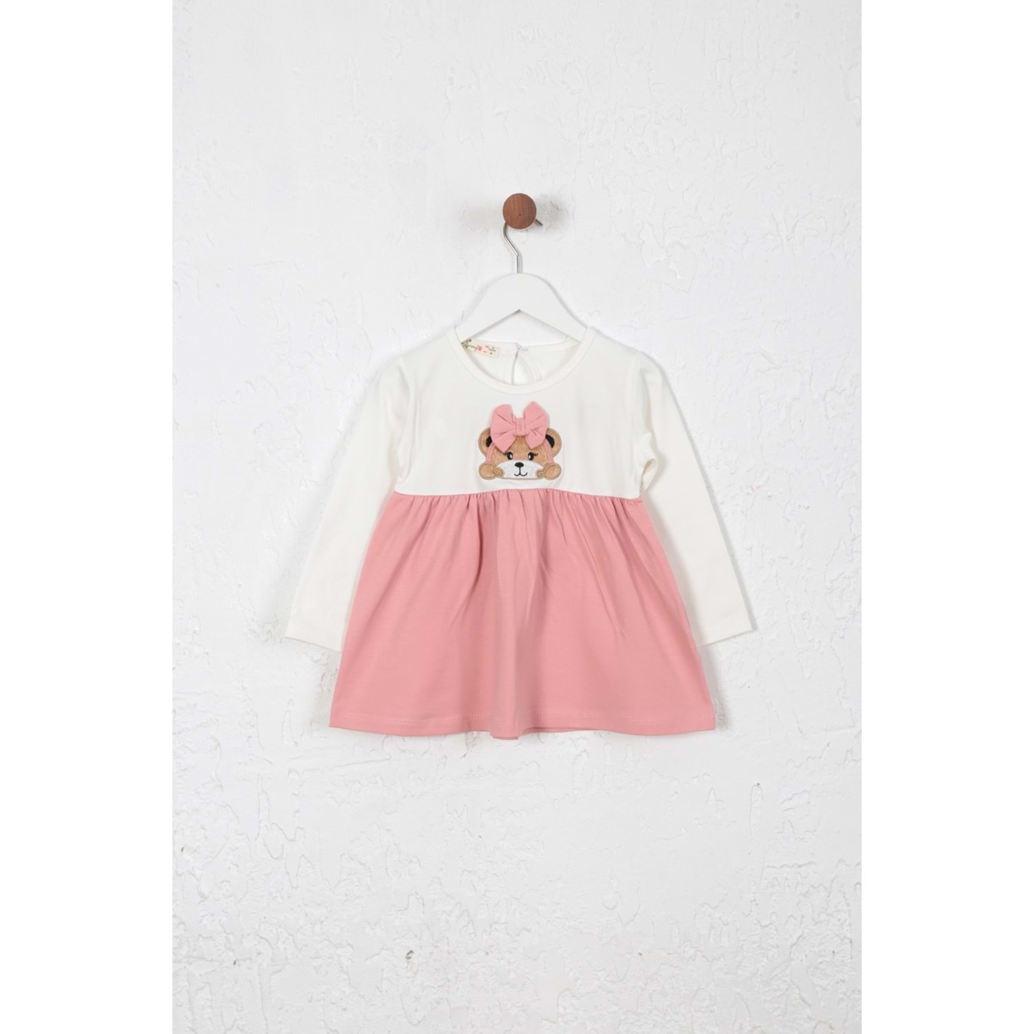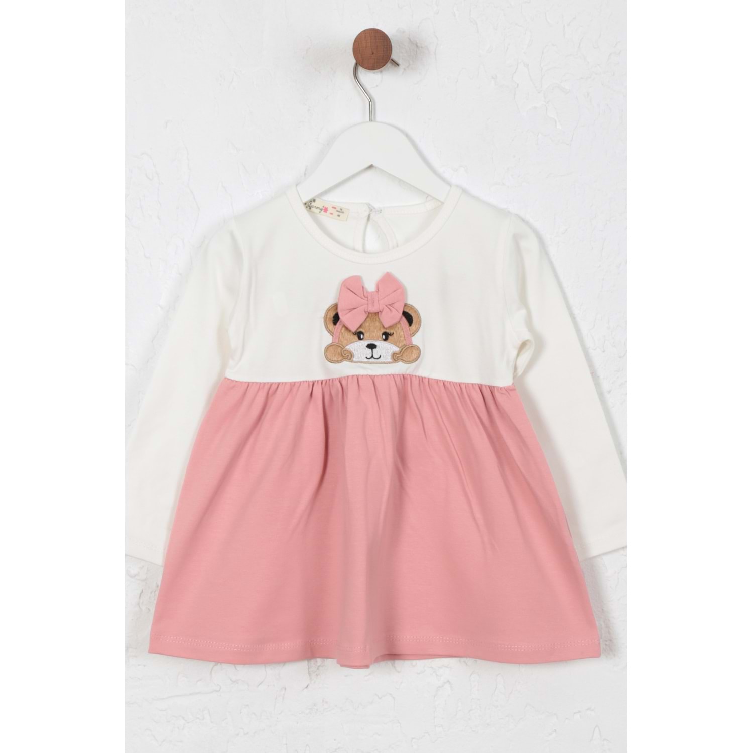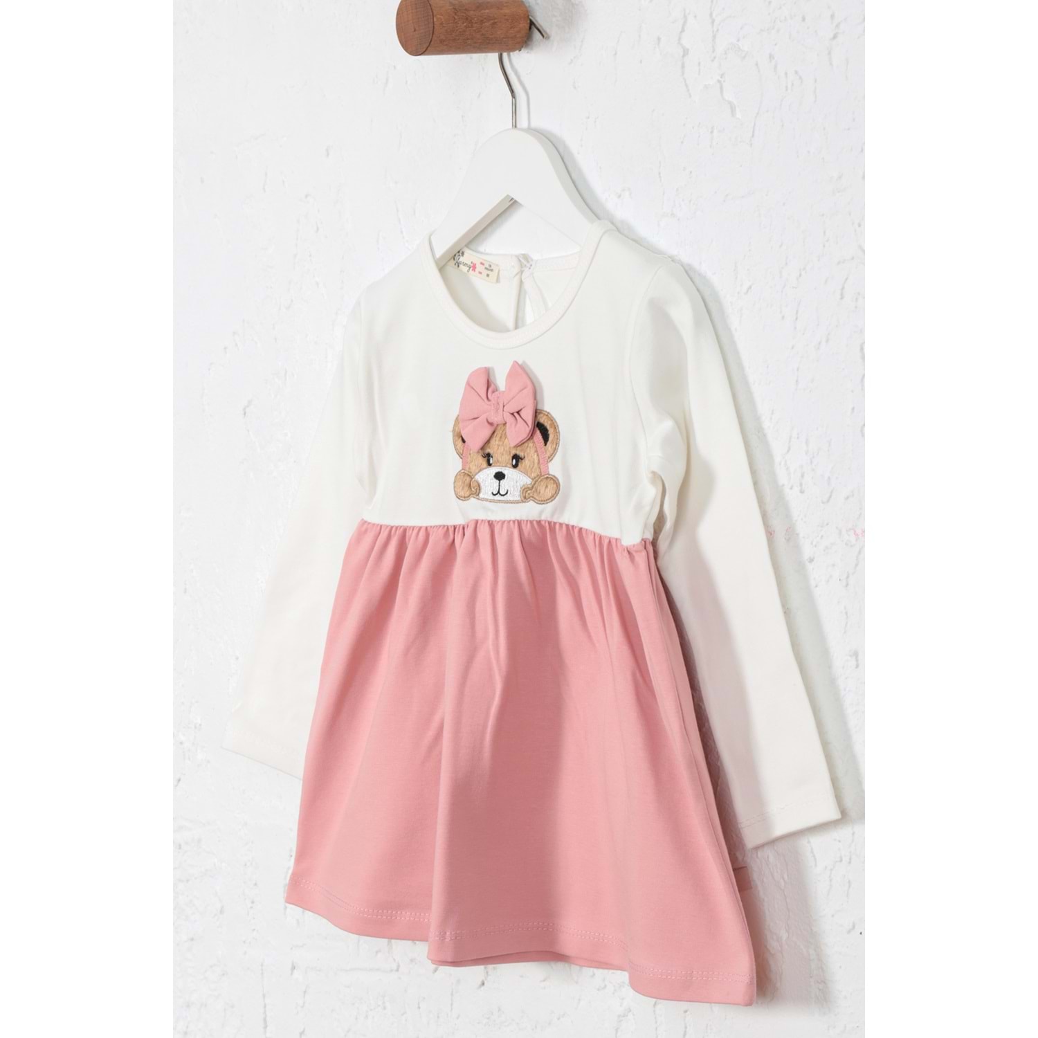 Kız Çocuk Elbise Kurdeleli Ayıcık Baskılı - Krem (86/110)