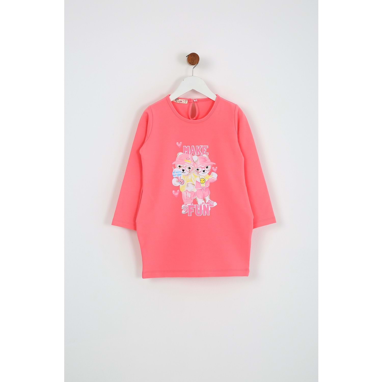 Kız Çocuk Elbise Make Fun Baskılı - Şeker Pembe (98/122)
