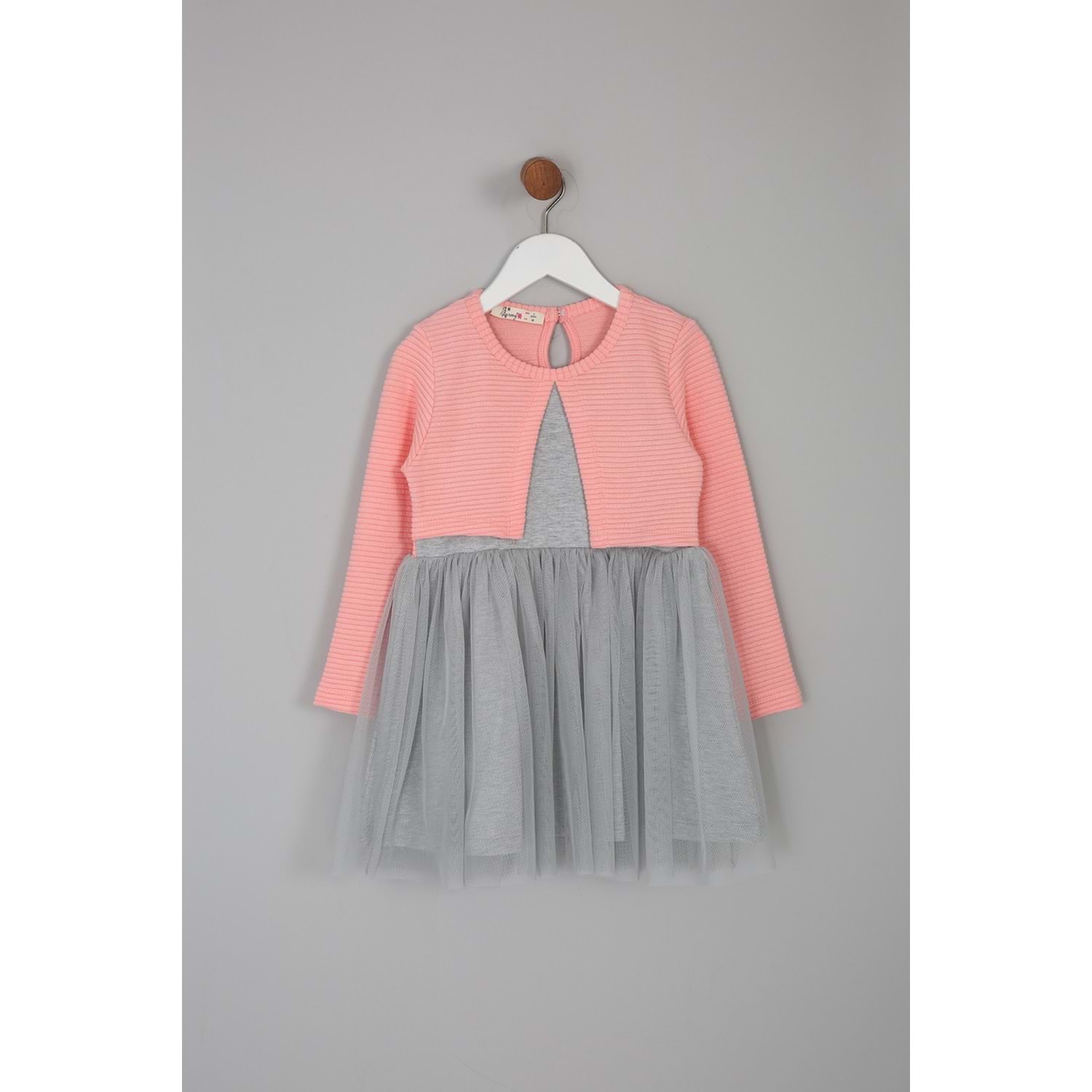 Kız Çocuk Elbise - Yavruağzı/Gri (98/122)