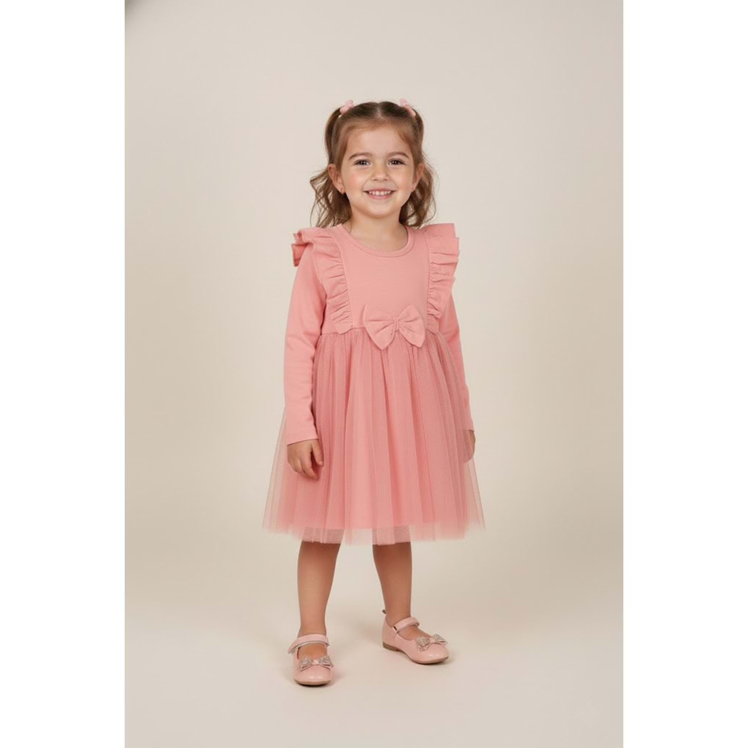 Kız Çocuk Fiyonk Detaylı Elbise - Gül Kurusu - (86/110)
