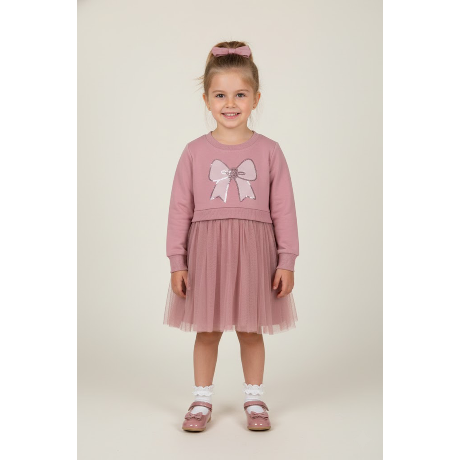 Kız Çocuk Fiyonk Nakışlı Elbise - Lila - (98/122)
