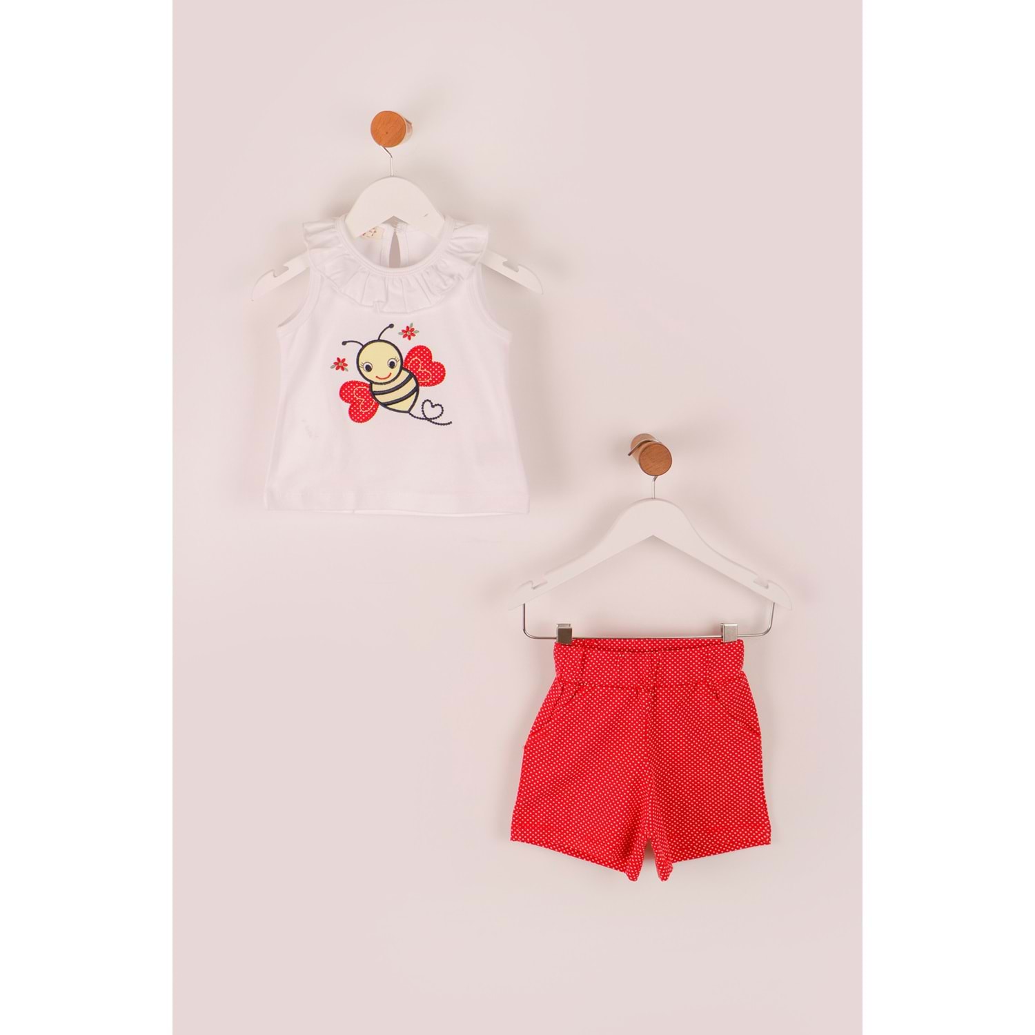 Kız Çocuk Şortlu Takım Sevimli Arı Baskılı - Beyaz (74/98)