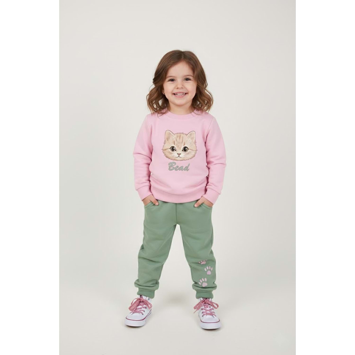 Kız Çocuk Kedi Baskılı Takım - Bebe Pembe - (86/110)