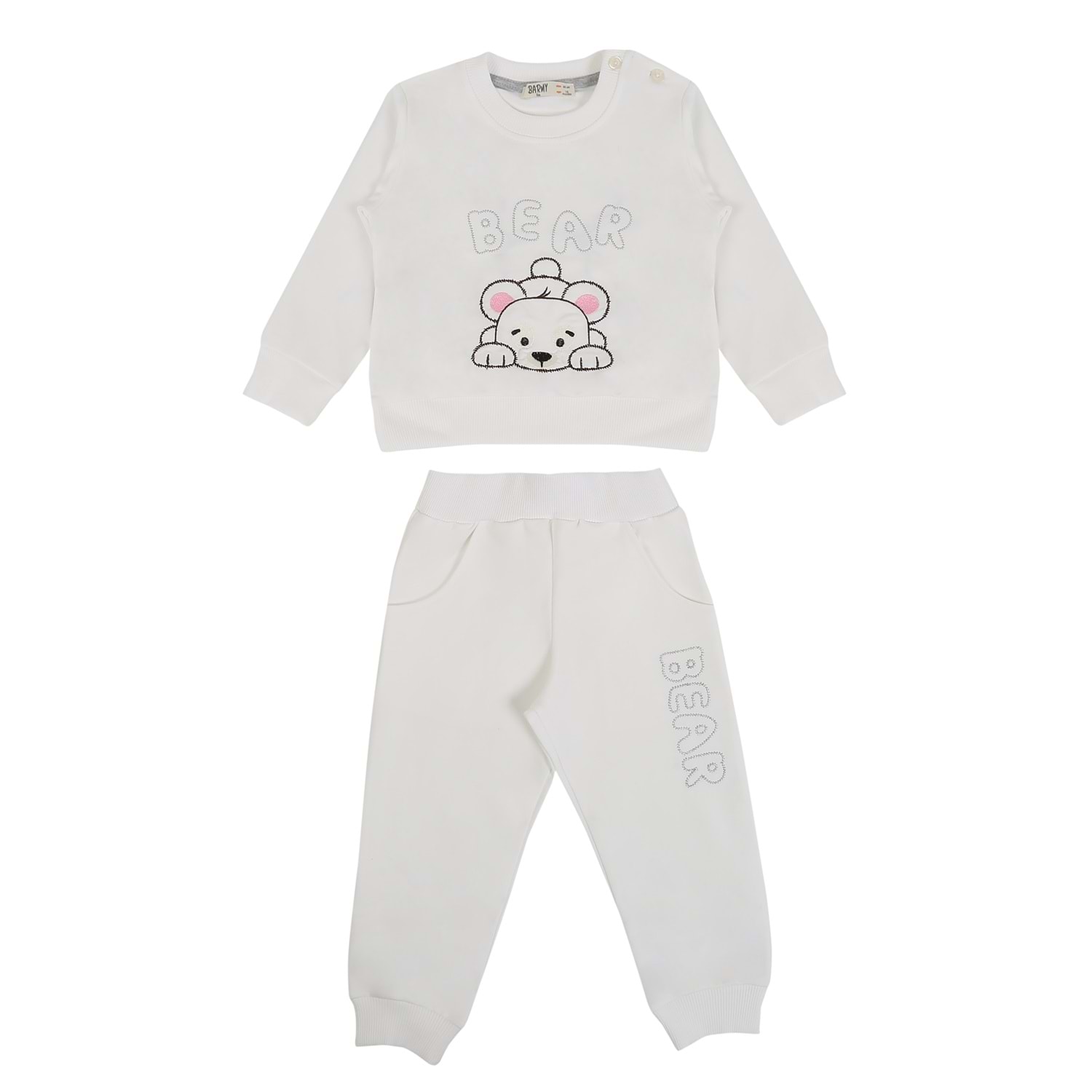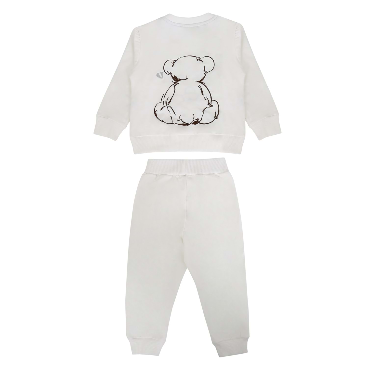 Kız Çocuk Sweat Takım Ayı Nakışlı - Krem (86/110)