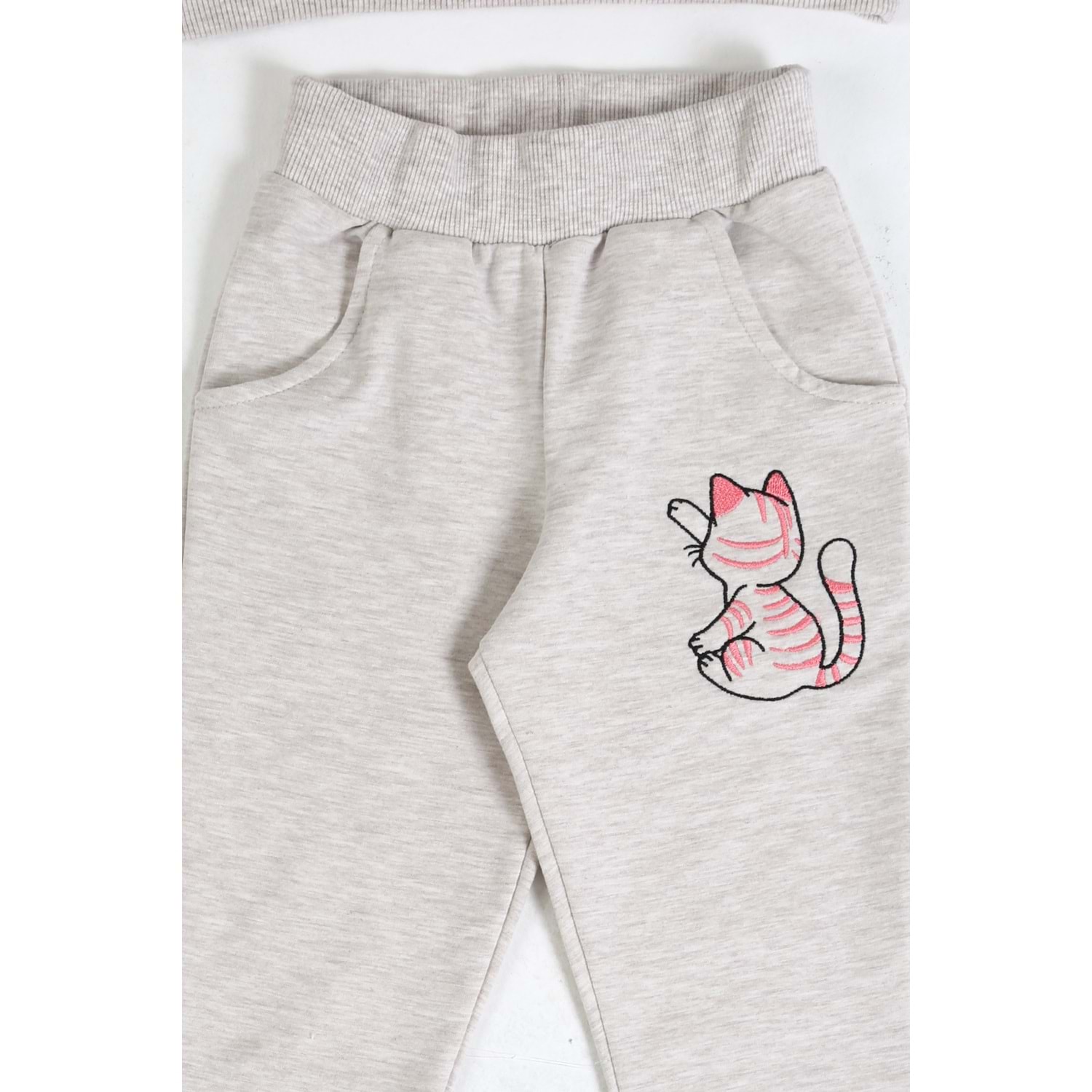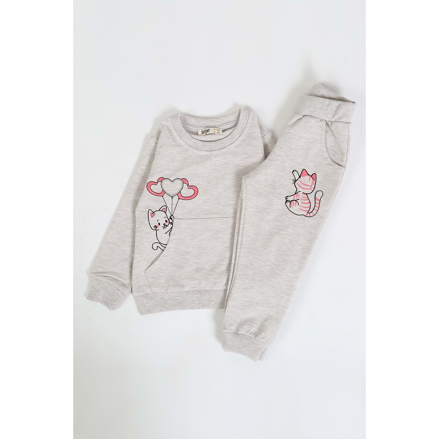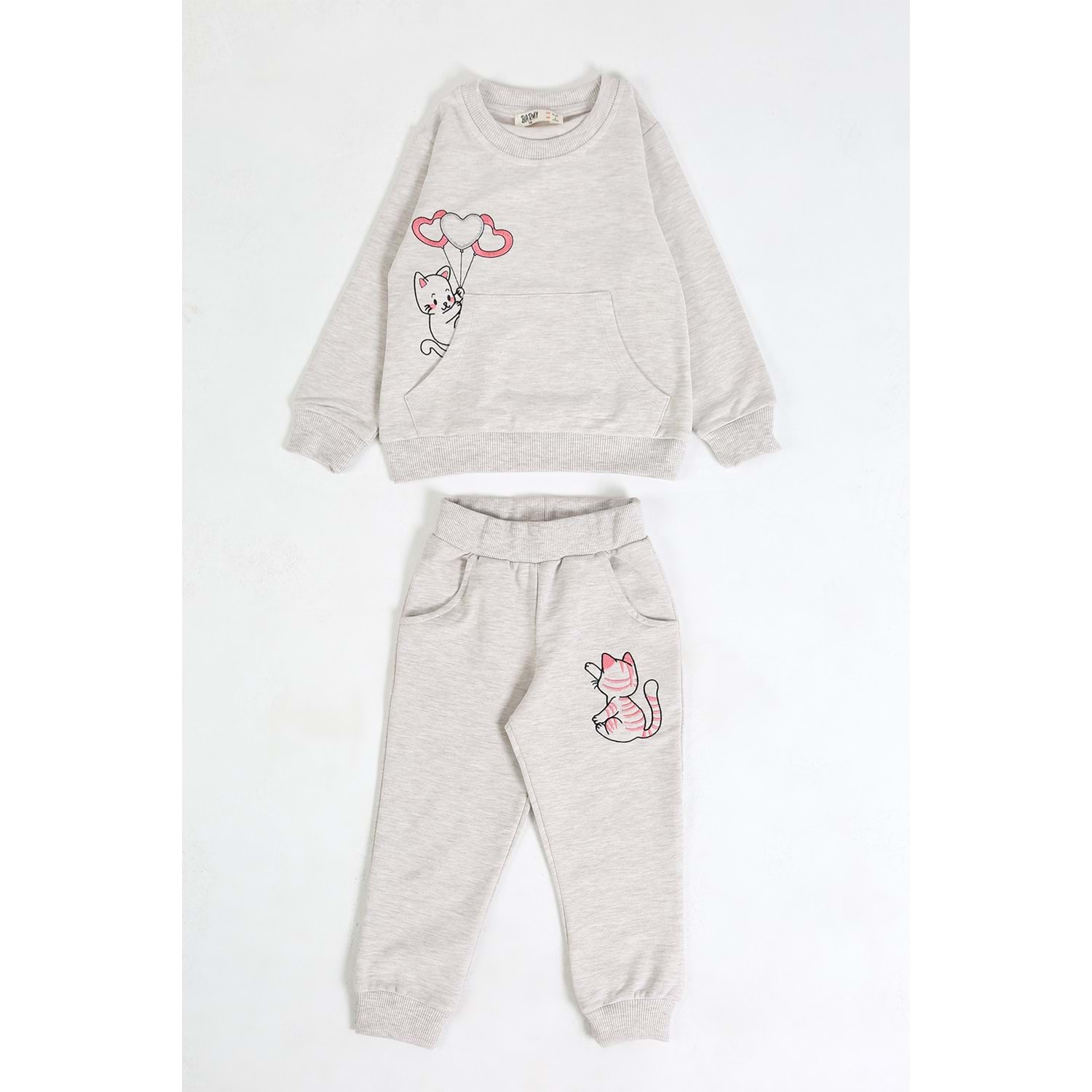 Kız Çocuk Sweat Takım Balonlu Kedi - Kahve Melanj (92/116)
