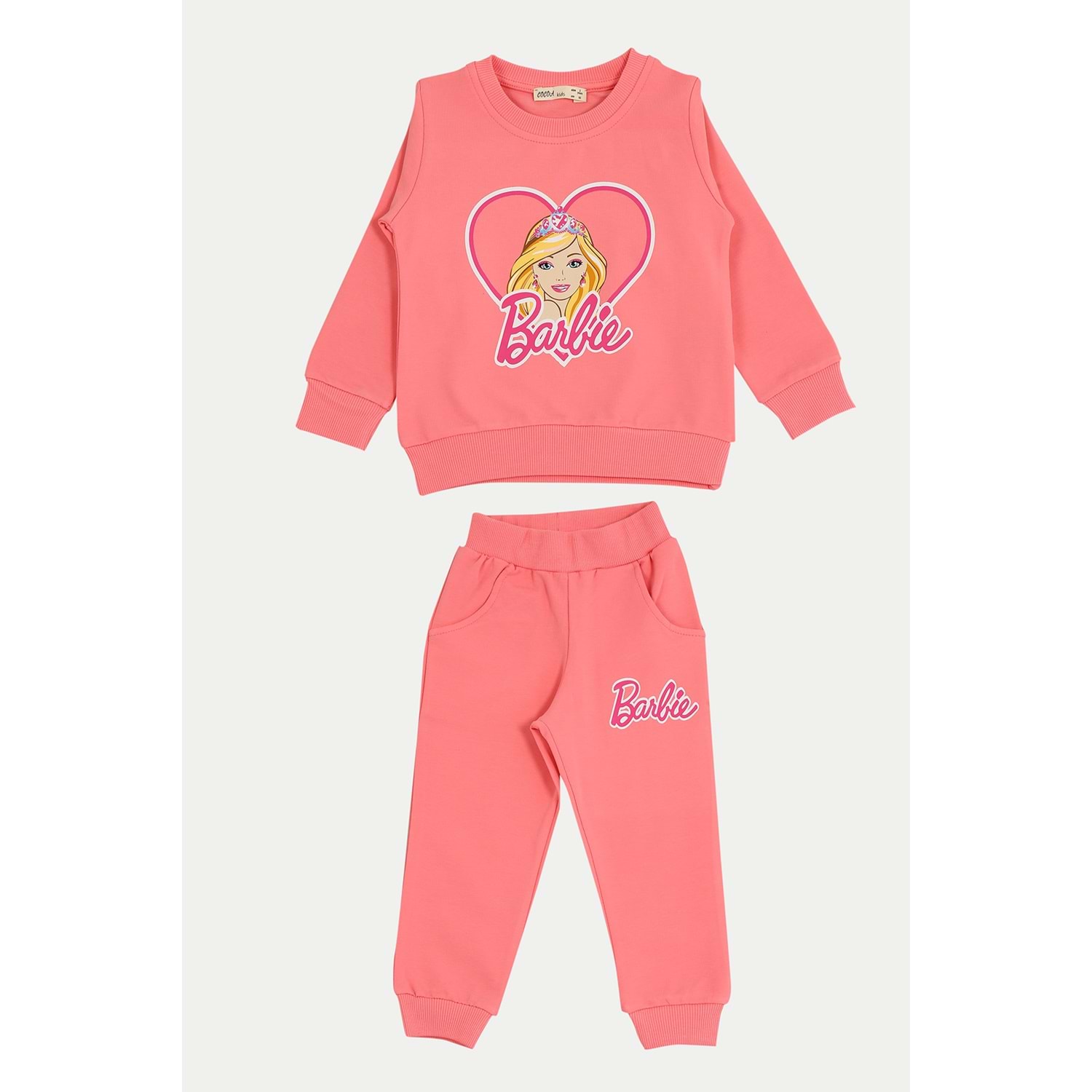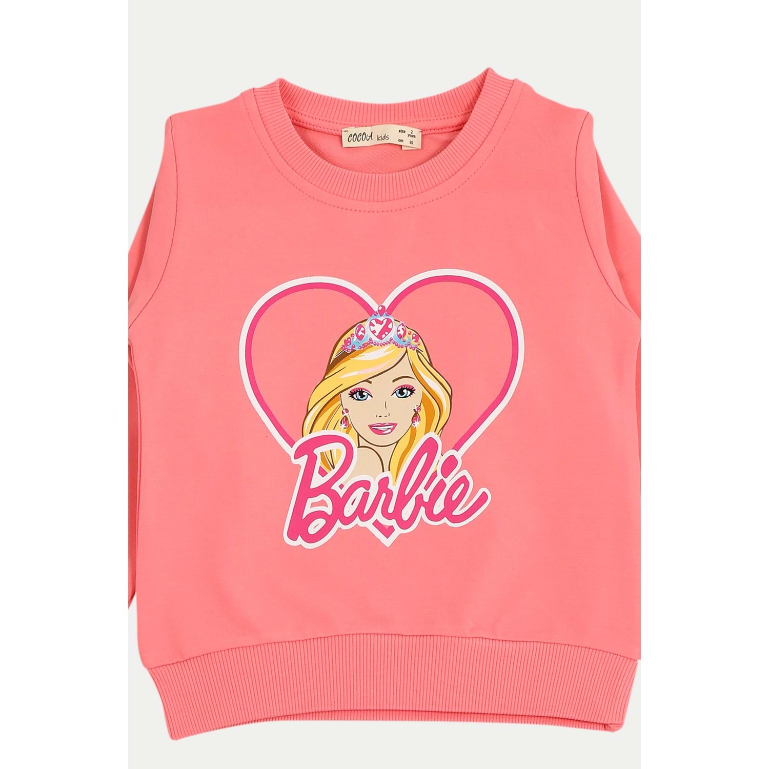 Kız Çocuk Sweat Takım Kalpli Barbie Baskılı - Şeker Pembe - 92/116