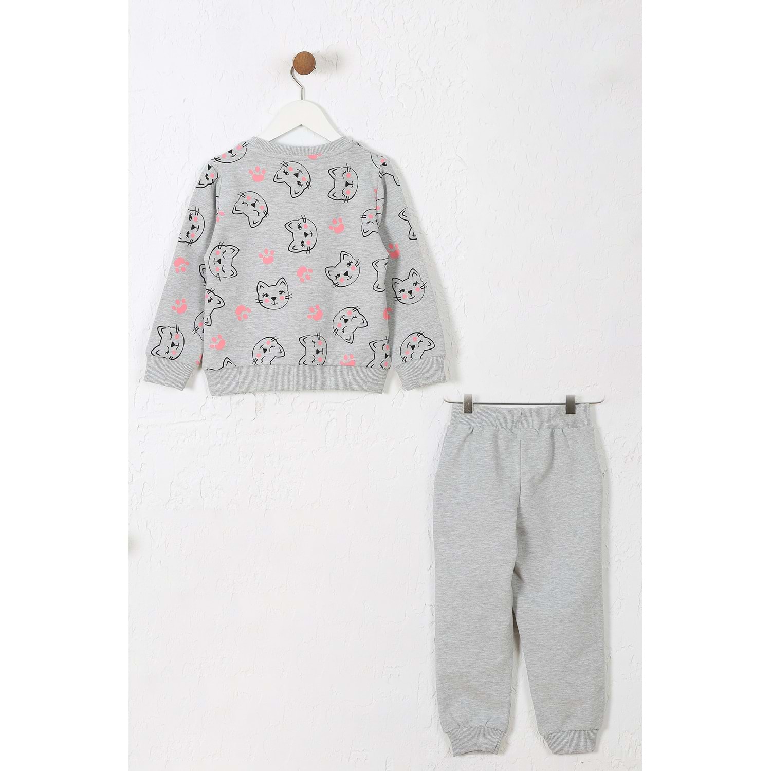 Kız Çocuk Sweat Takım Kediler Baskılı - Gri Melanj (98/122)