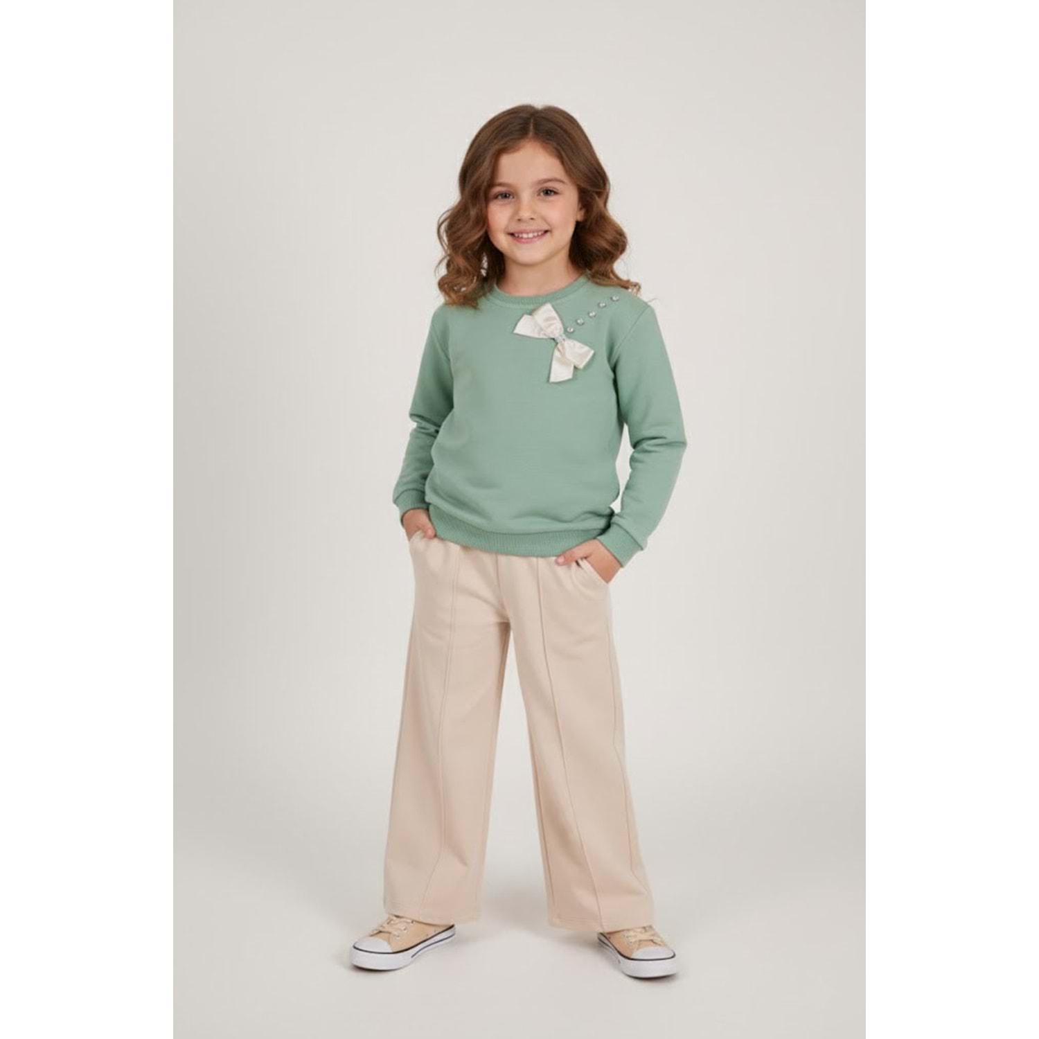 Kız Çocuk Taş Detaylı Takım - Çağla Yeşili - (116/140)
