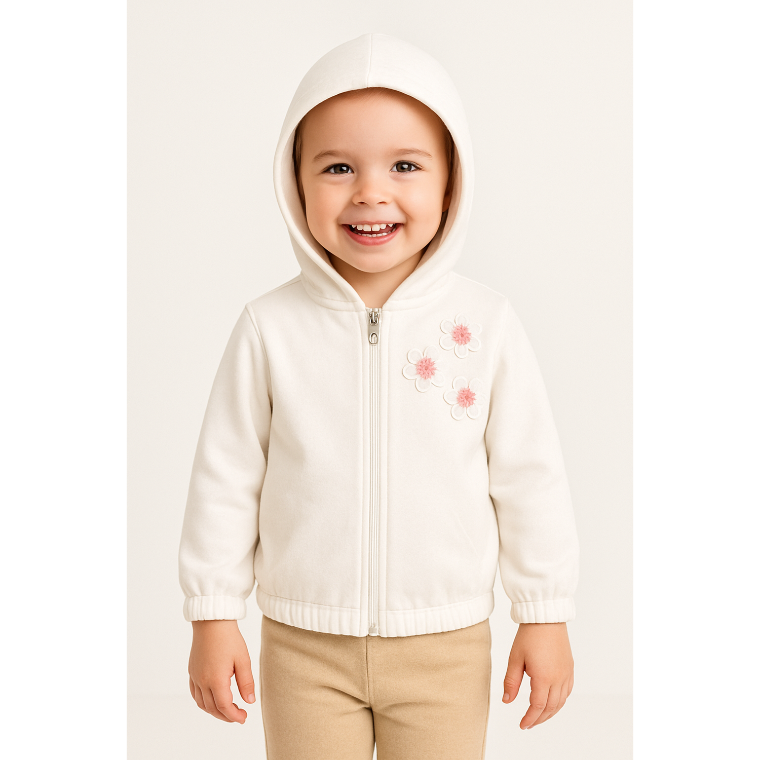 Kız Çocuk Hırka Çiçek Detaylı - Krem - (98/122)