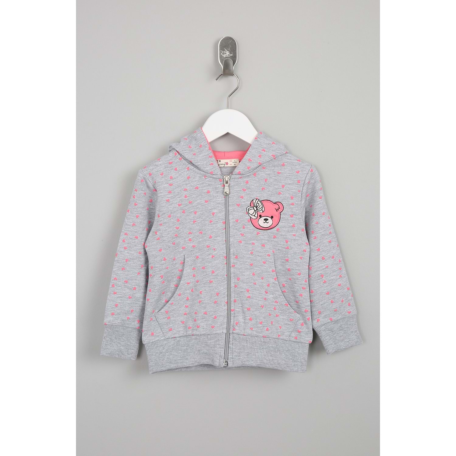 Kız Çocuk Hırka Çiçekli Ayıcık Nakışlı - Gri (86/110)