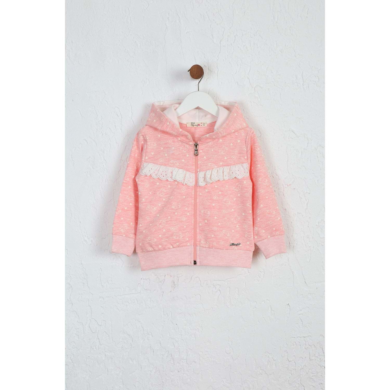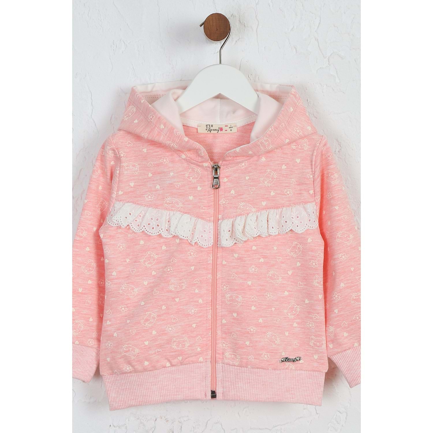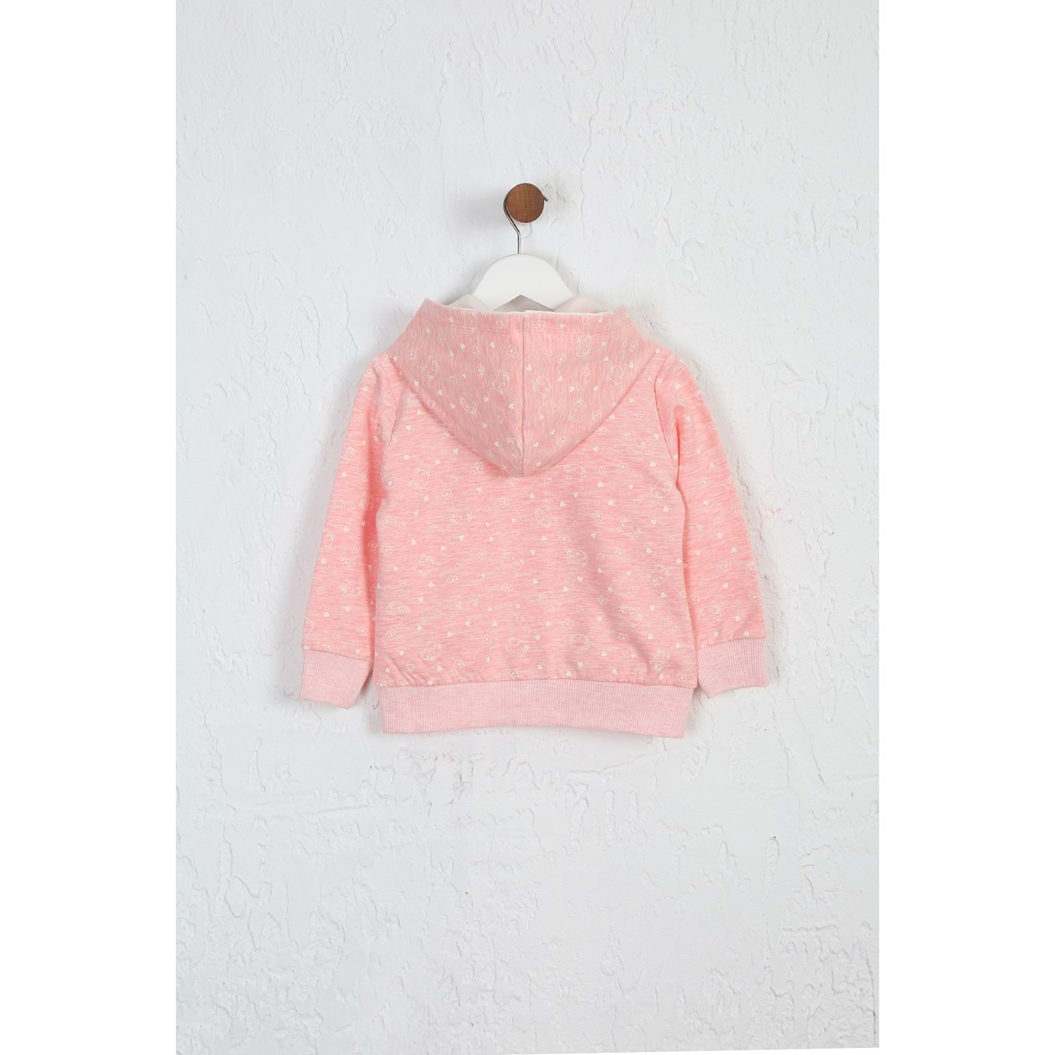 Kız Çocuk Hırka Kedi Desen - Pembe Melanj (92/116)