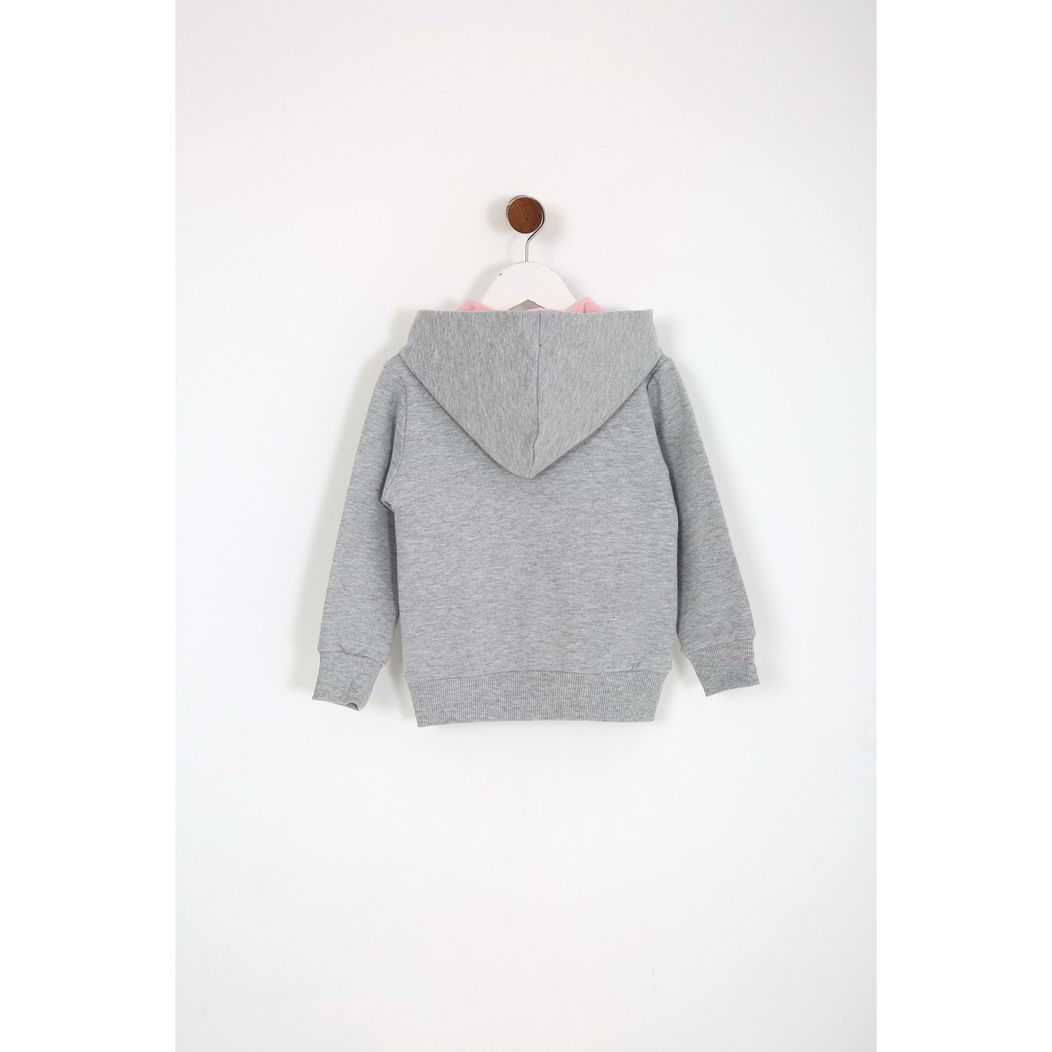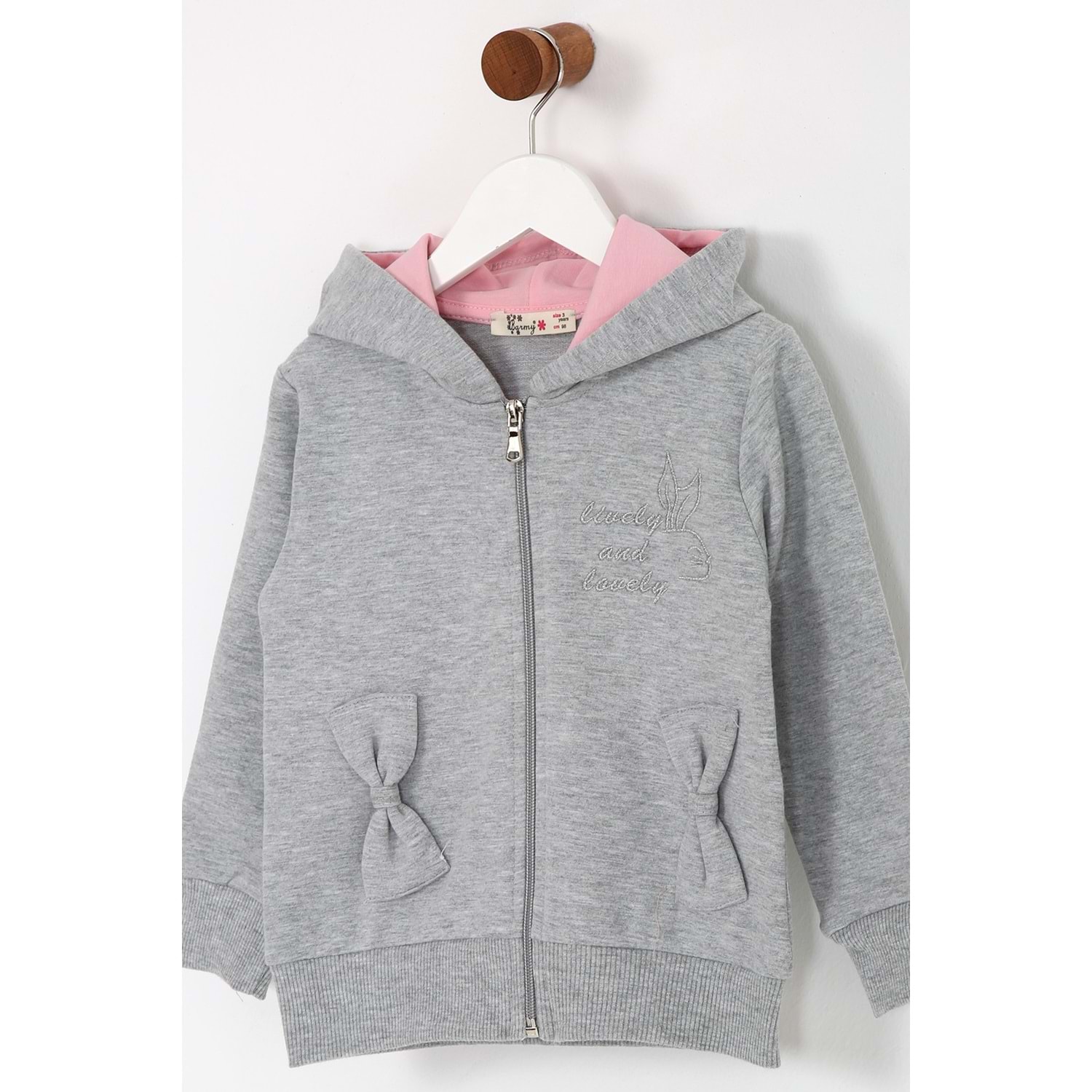 Kız Çocuk Hırka Yazılı Tavşan Baskılı - Gri (98/122)