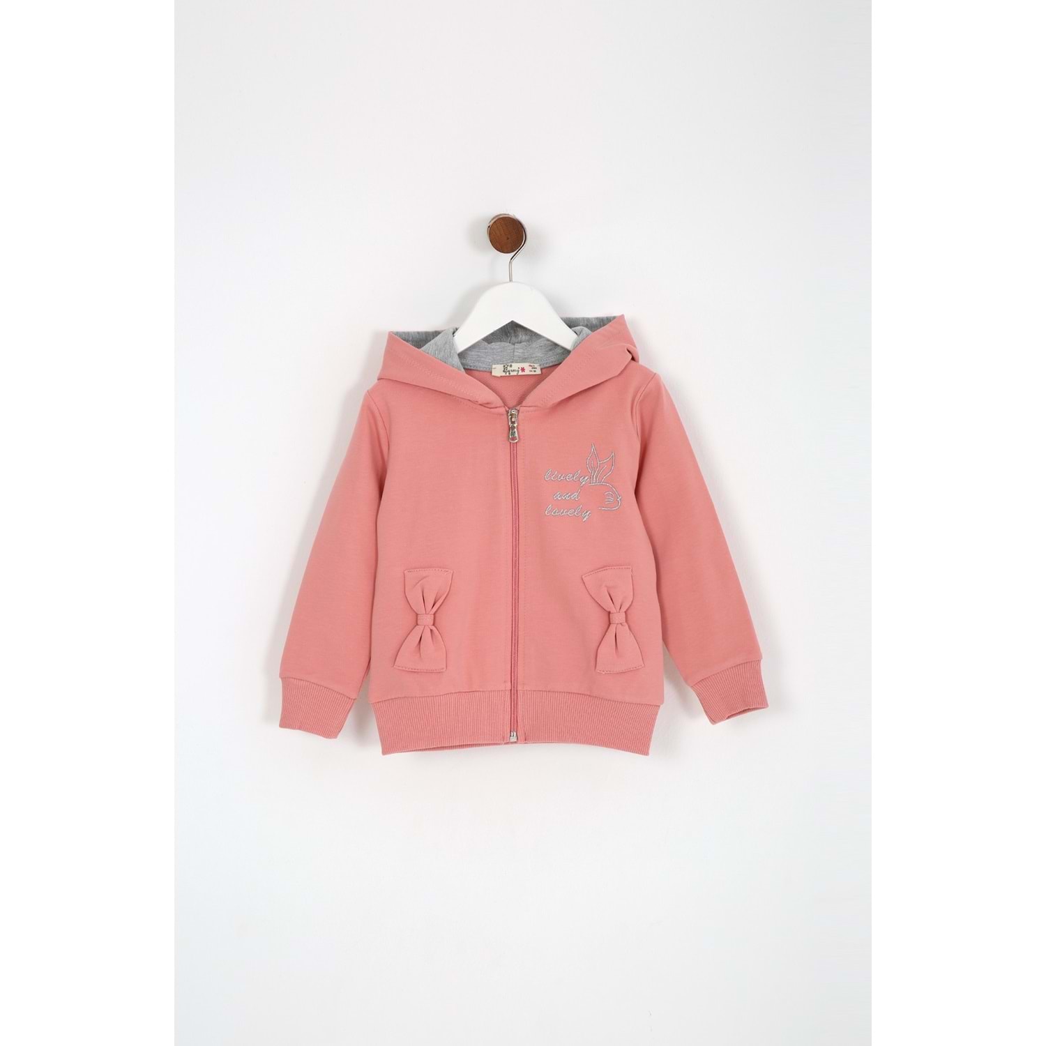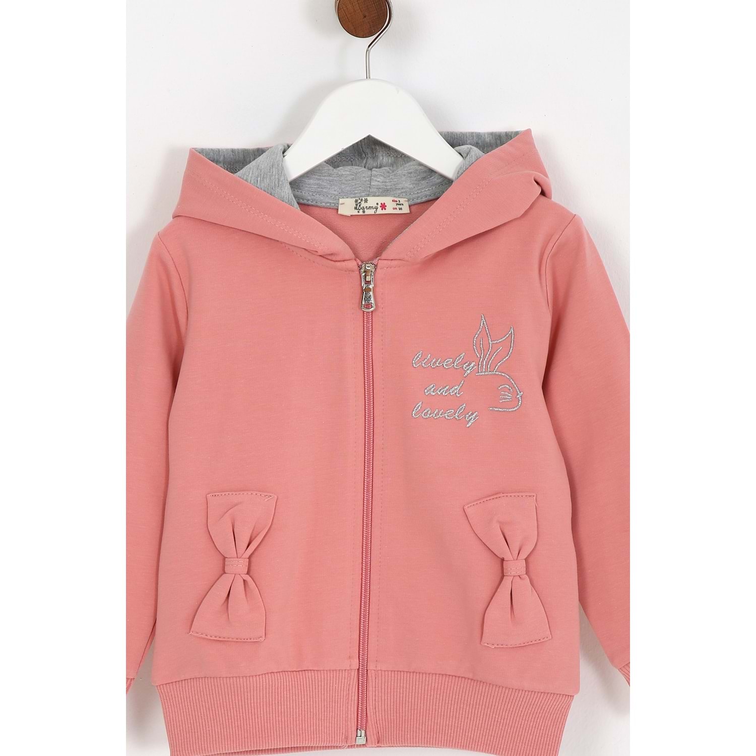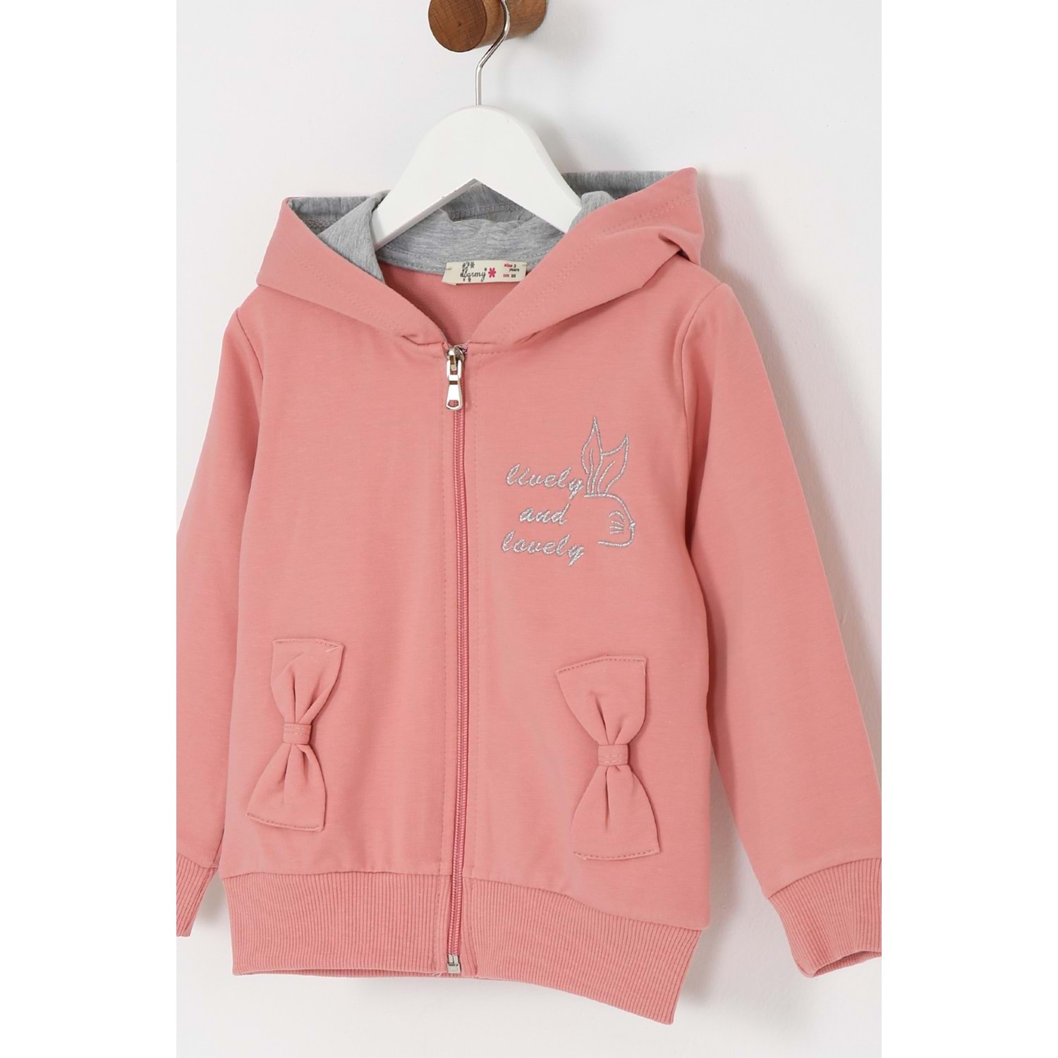 Kız Çocuk Hırka Yazılı Tavşan Baskılı - Gül Kurusu (98/122)
