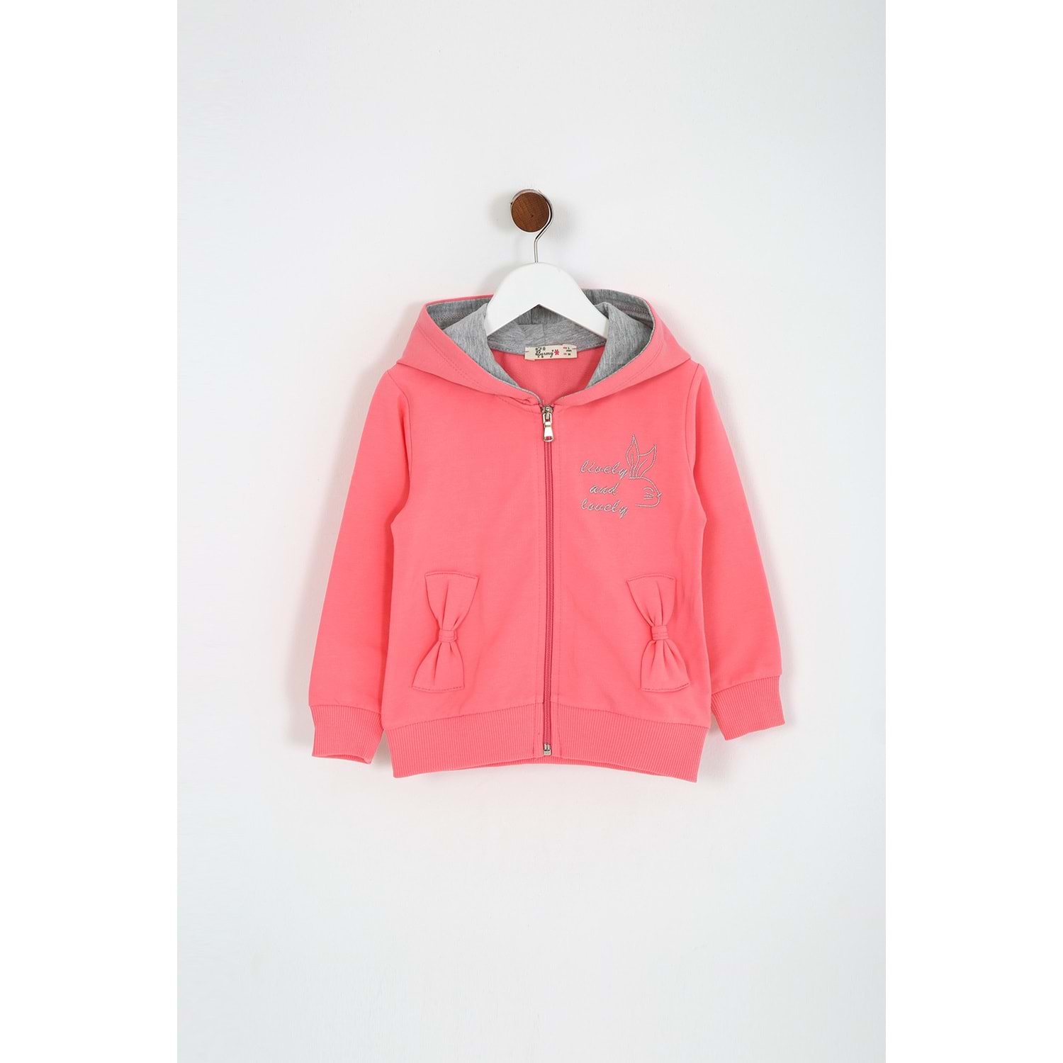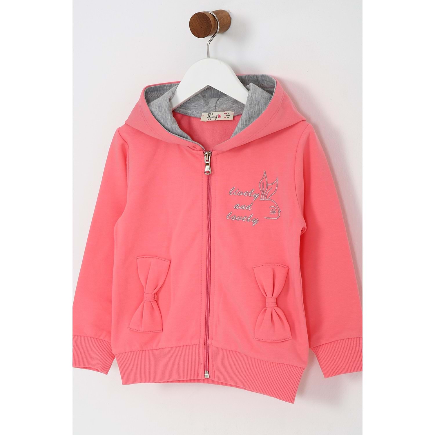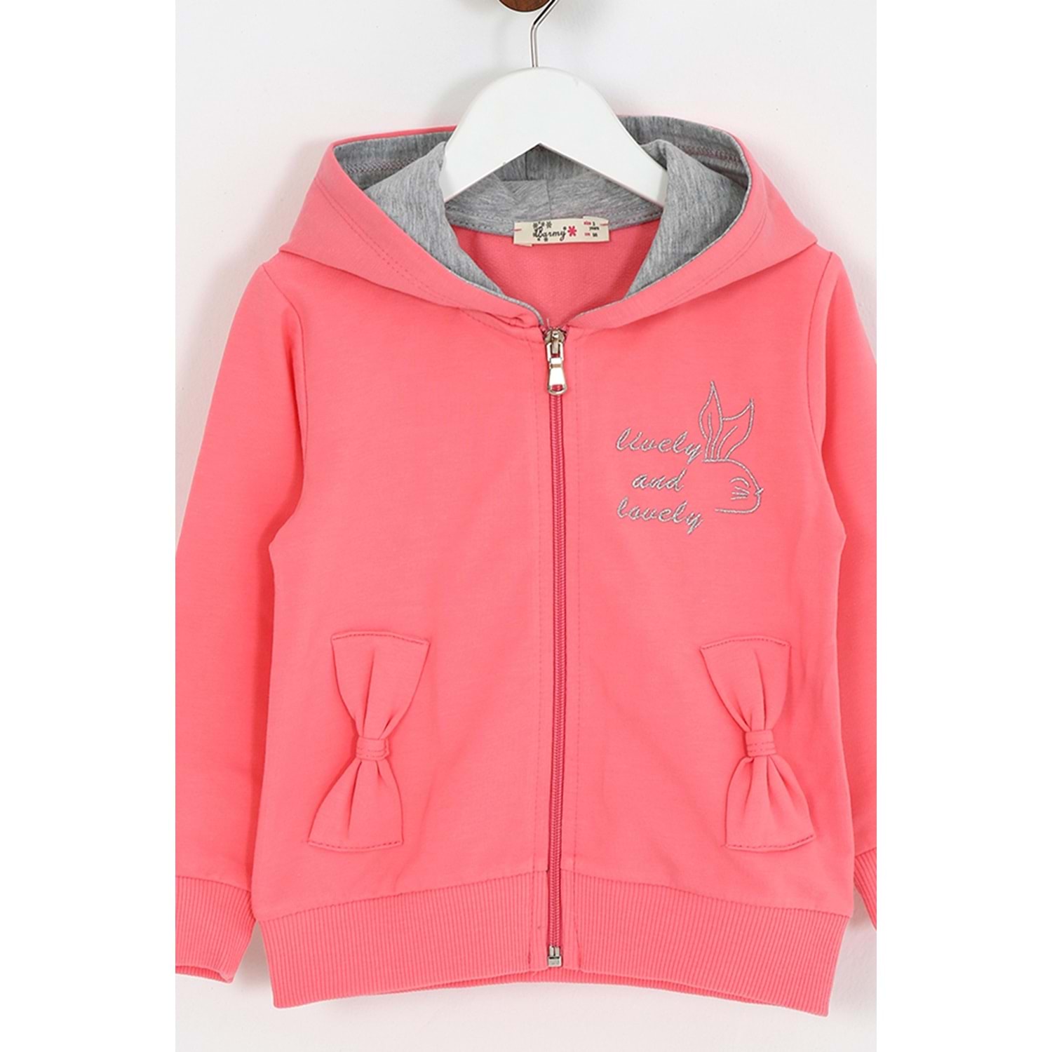 Kız Çocuk Hırka Yazılı Tavşan Baskılı - Şeker Pembe (98/122)