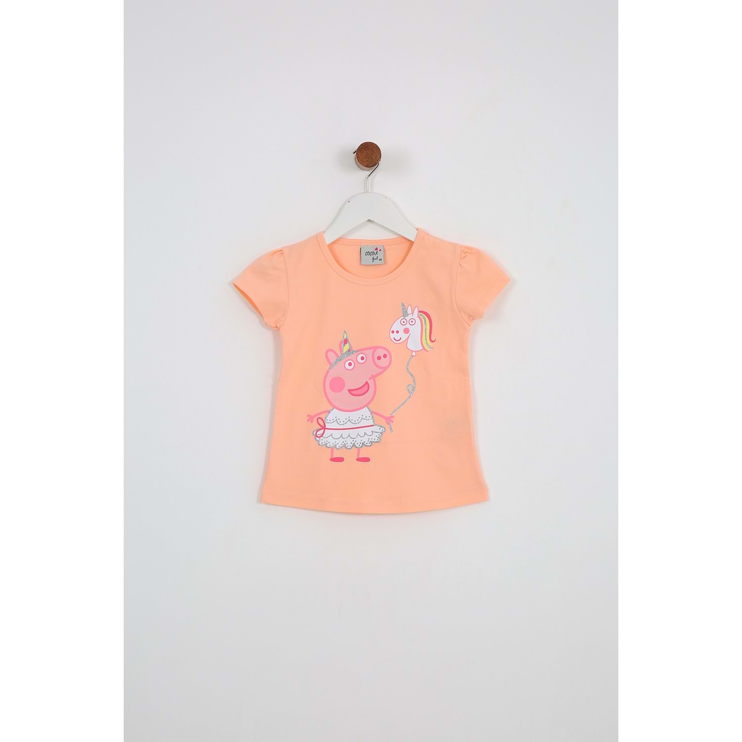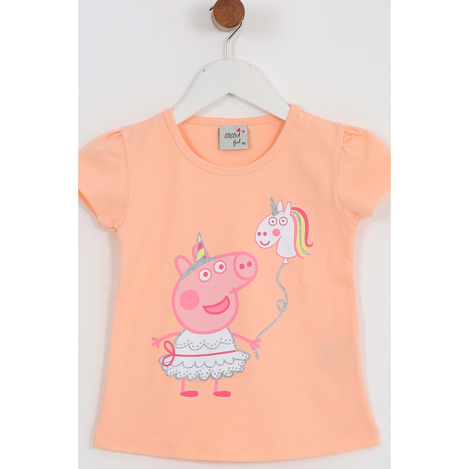 Kız Çocuk Tişört Domuz Baskılı - Yavruağzı (92/116)