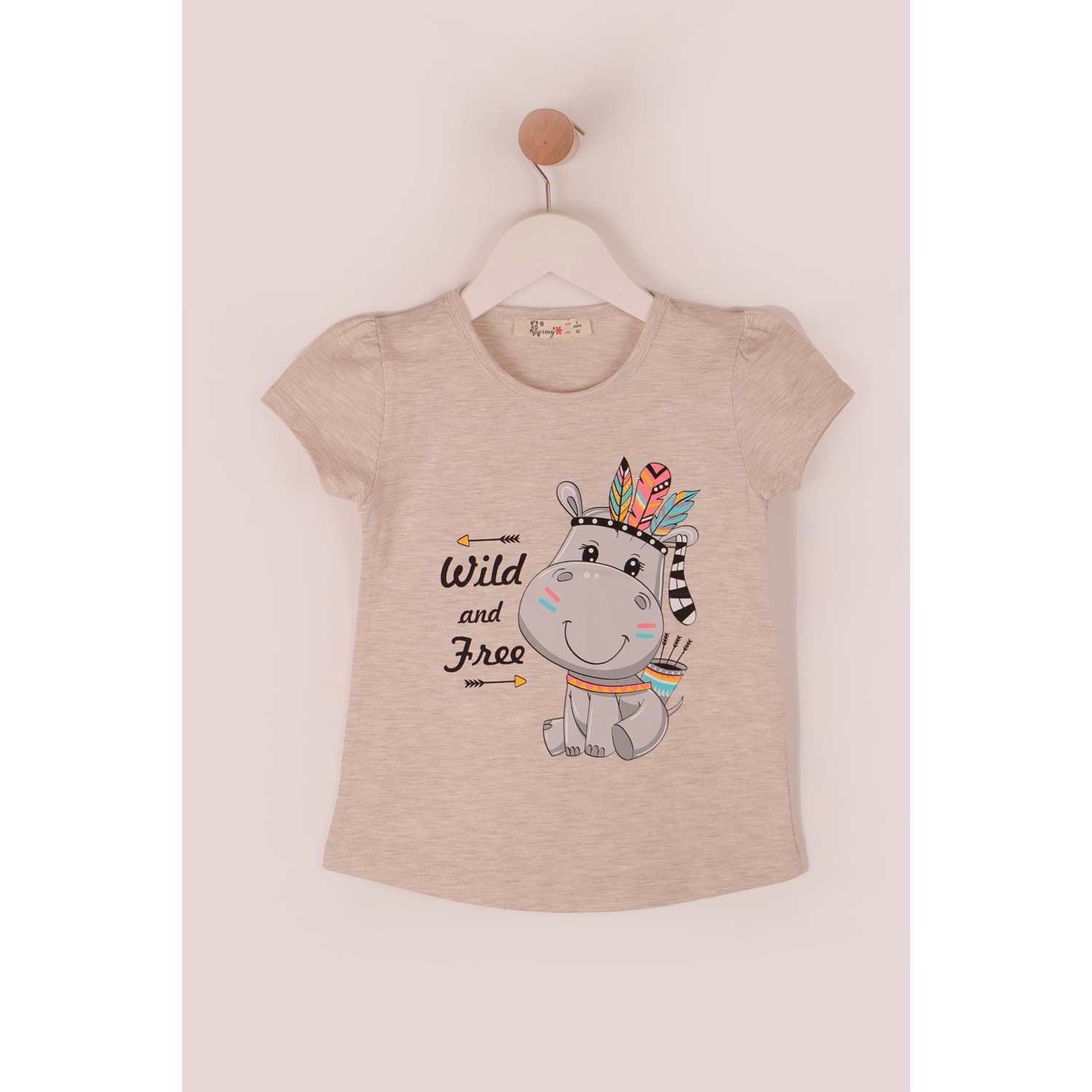 Kız Çocuk Tişört Kızılderili At Baskılı - Kahve (92/116)