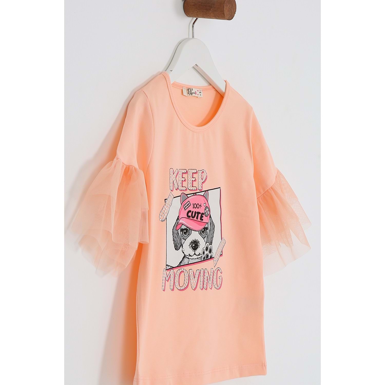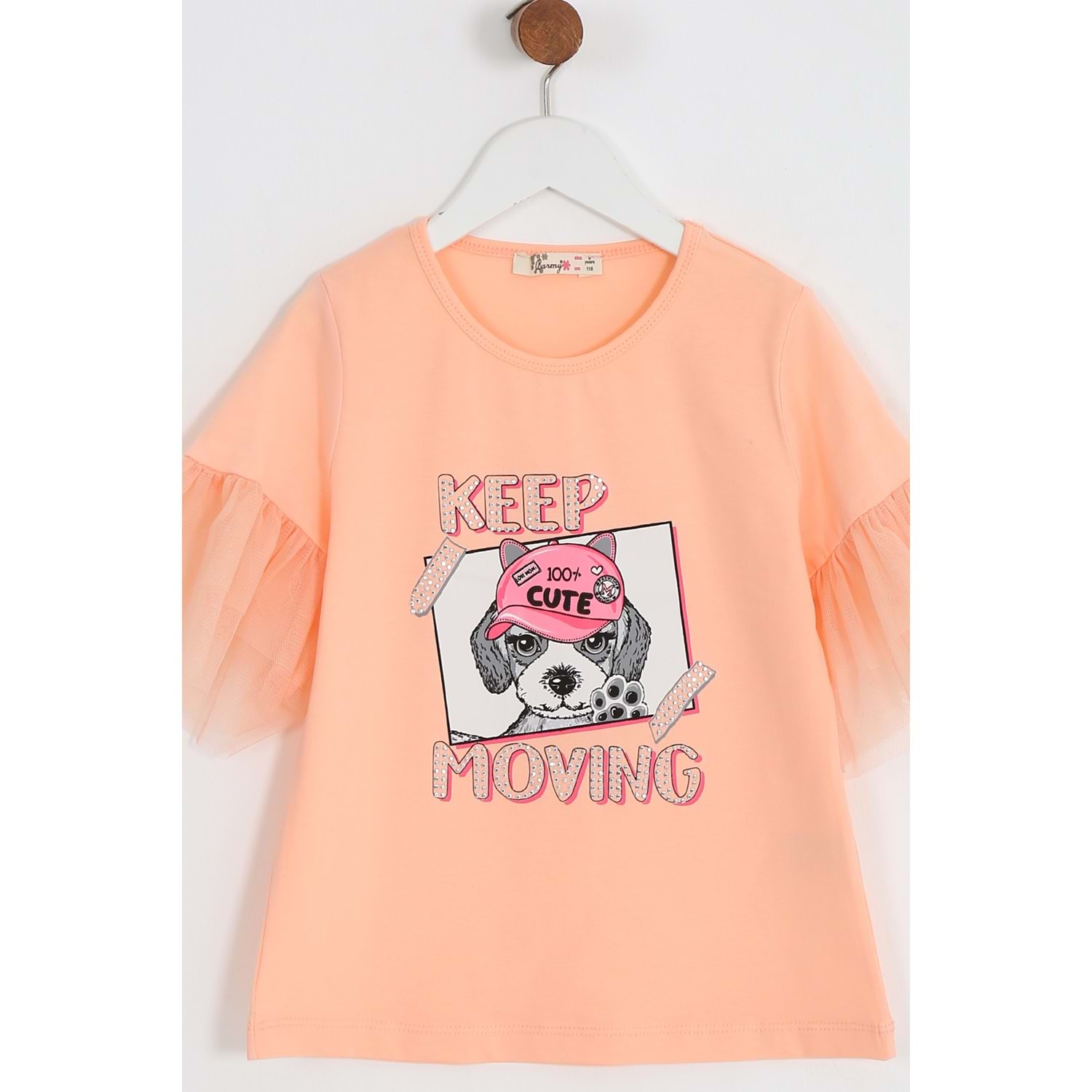 Kız Çocuk Tişört Şirin Köpek Baskılı - Yavruağzı (116-140)