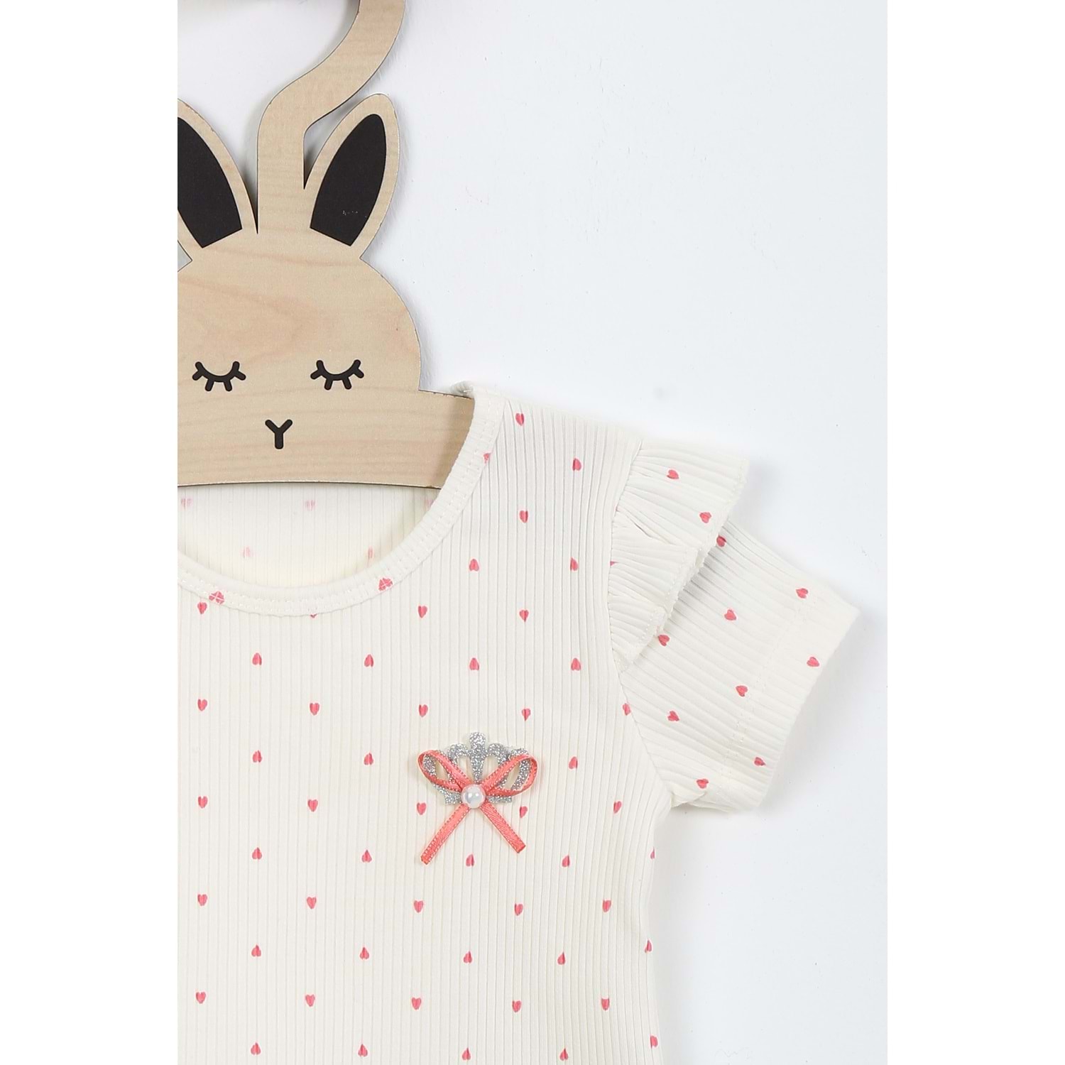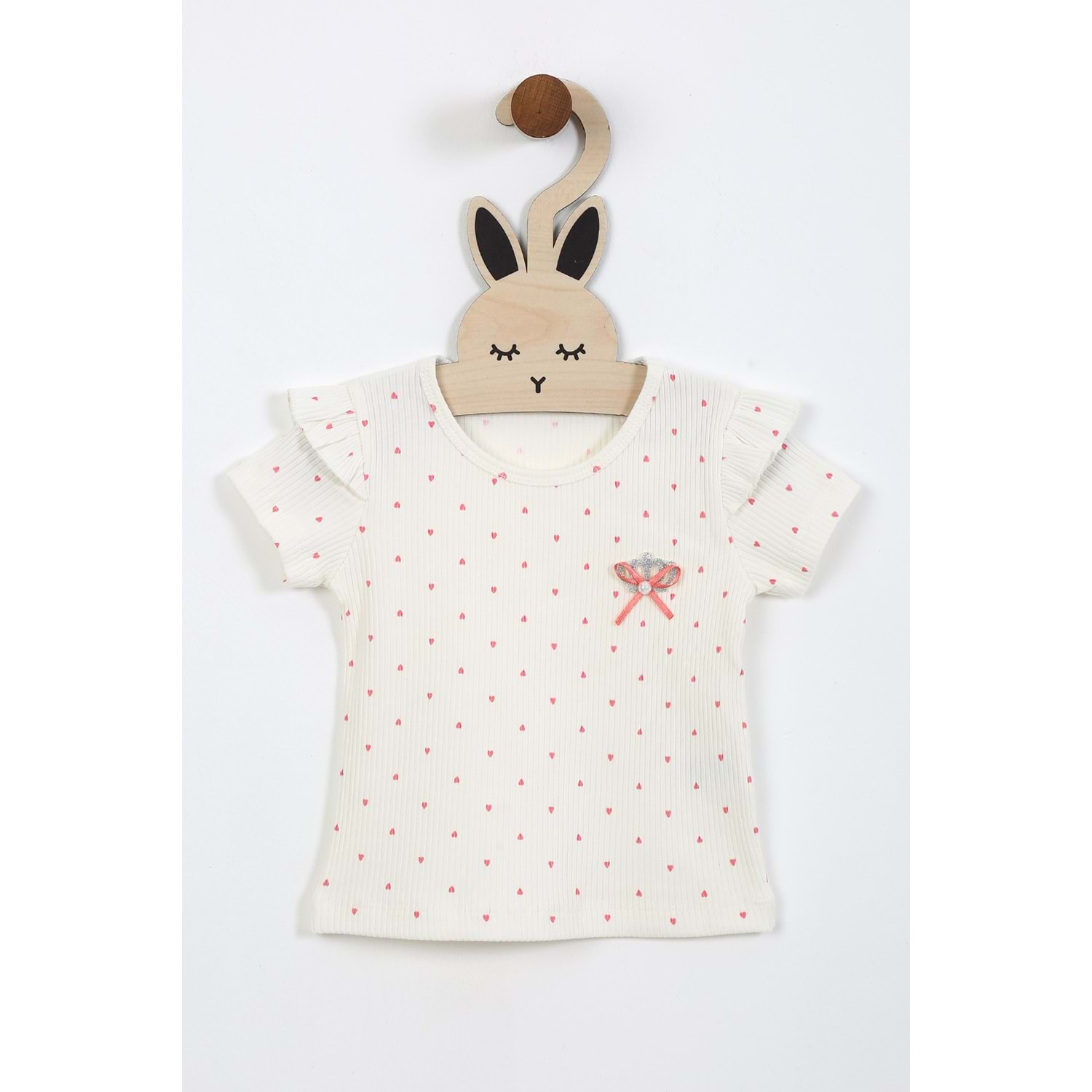 Kız Çocuk Tişört Yakası Tüllü Kurdeleli - Krem (92/116)