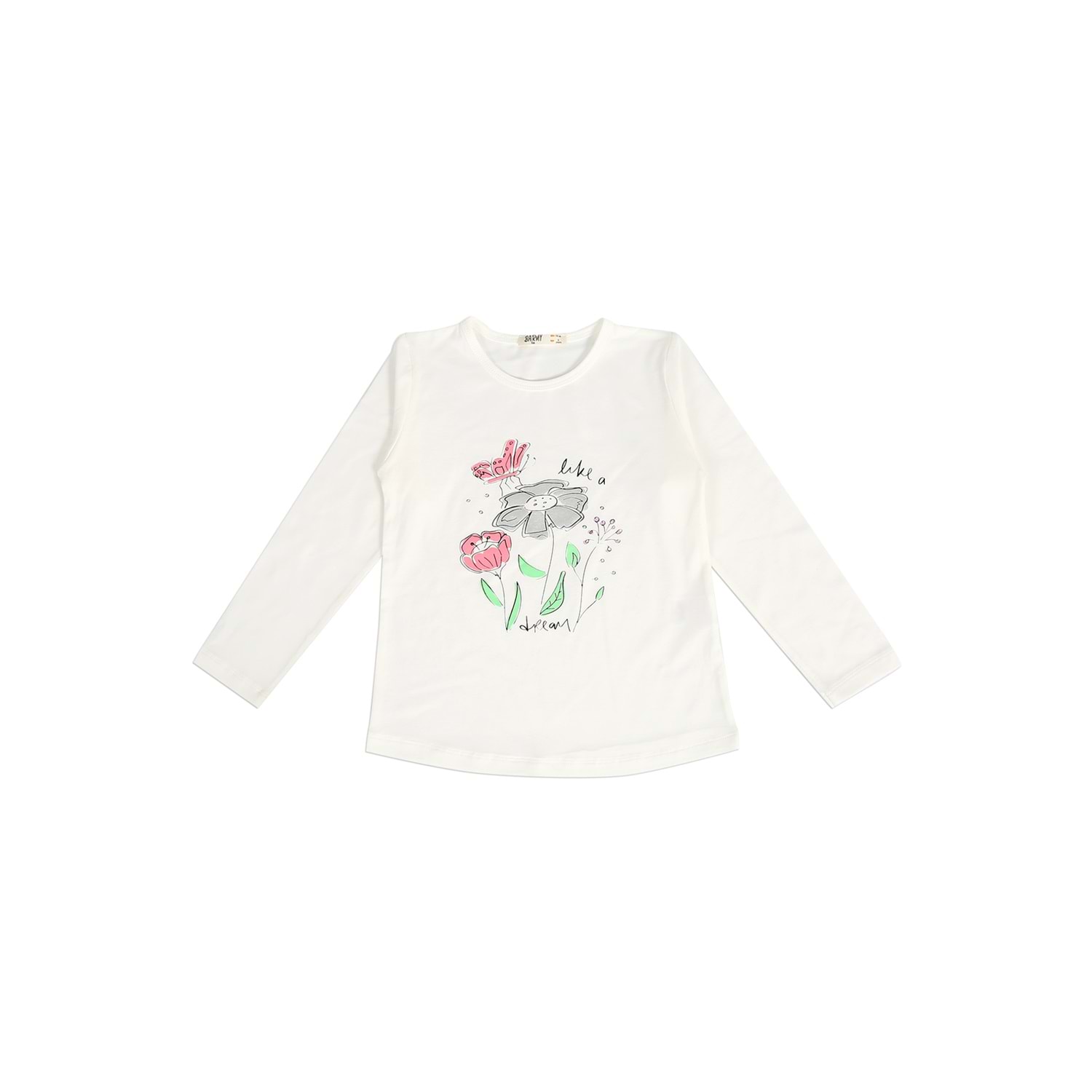 Kız Çocuk Tişört Çiçek Baskılı - Krem (116/140)
