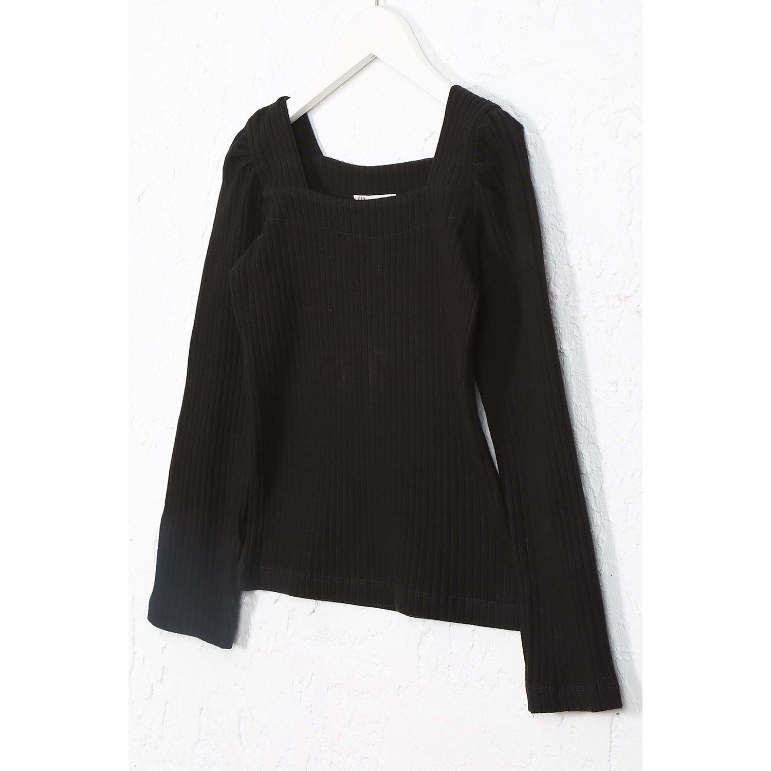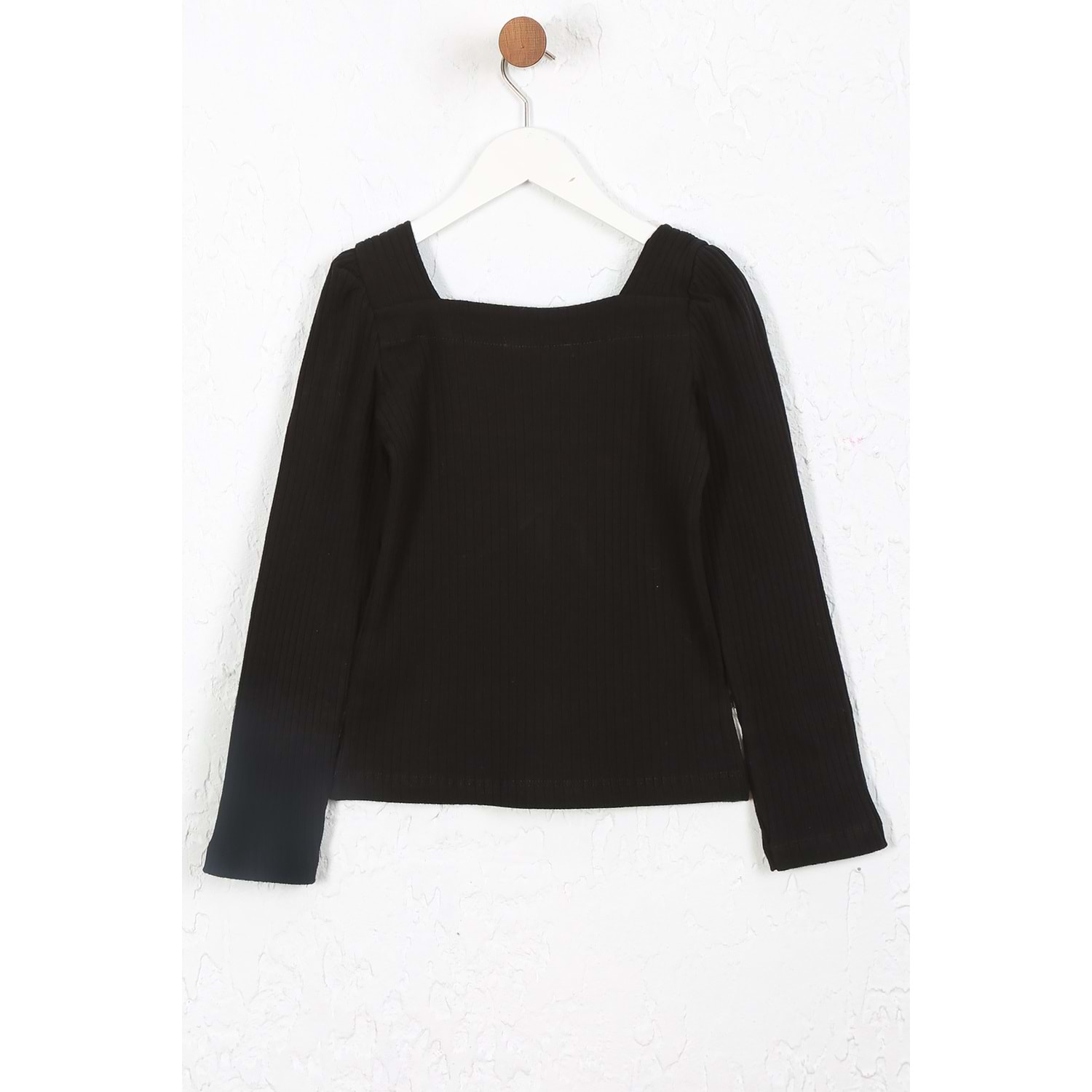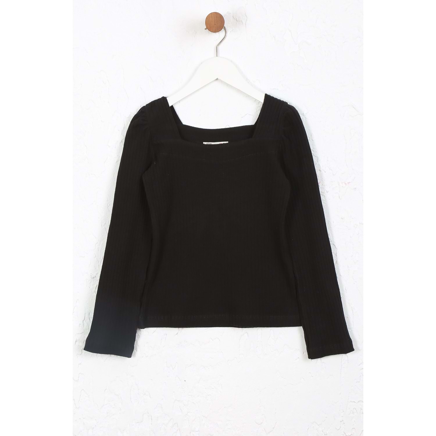 Kız Çocuk Tişört Dikdörtgen Yaka - Siyah (128/152)