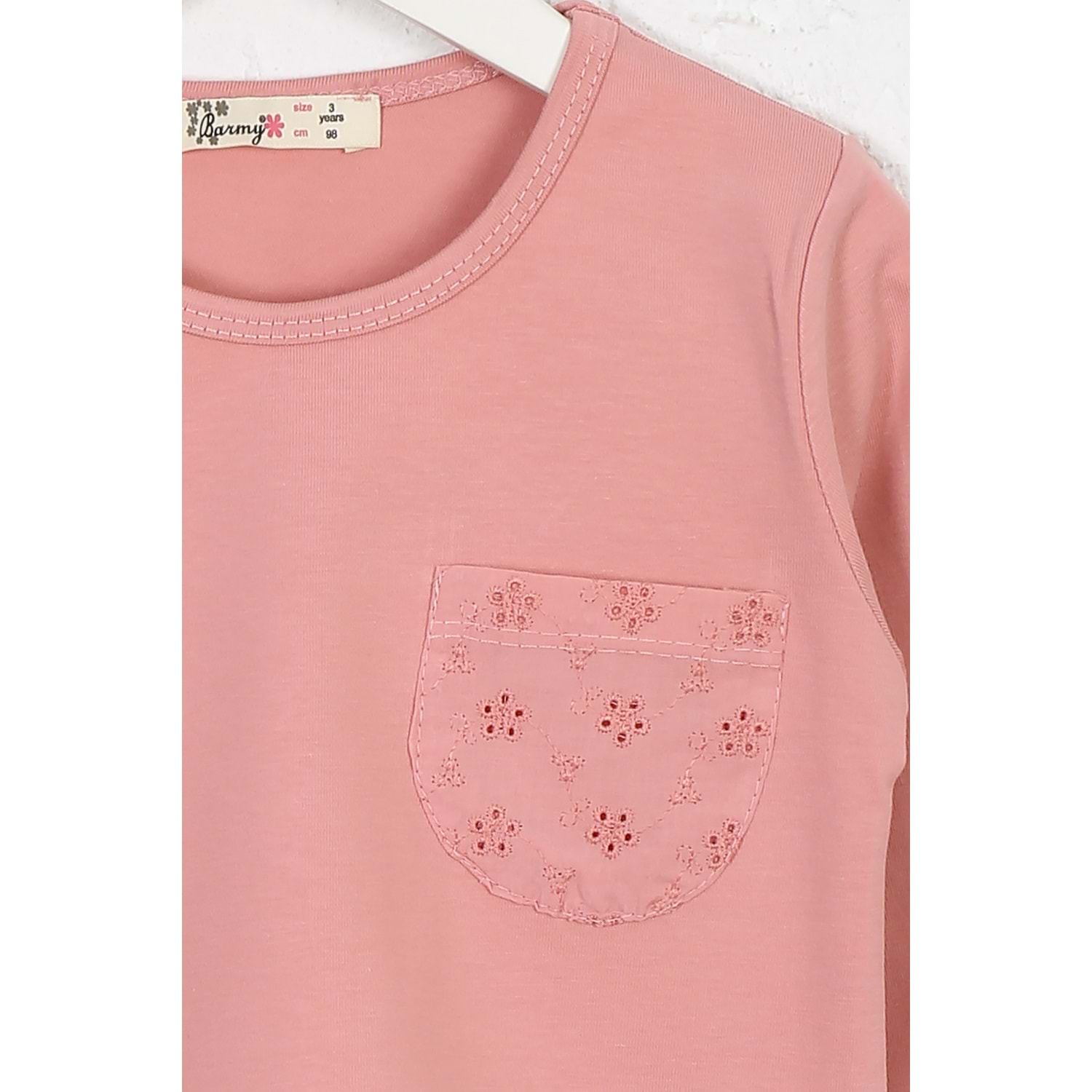 Kız Çocuk Tişört Fistolu Cep - Gül Kurusu (98/122)