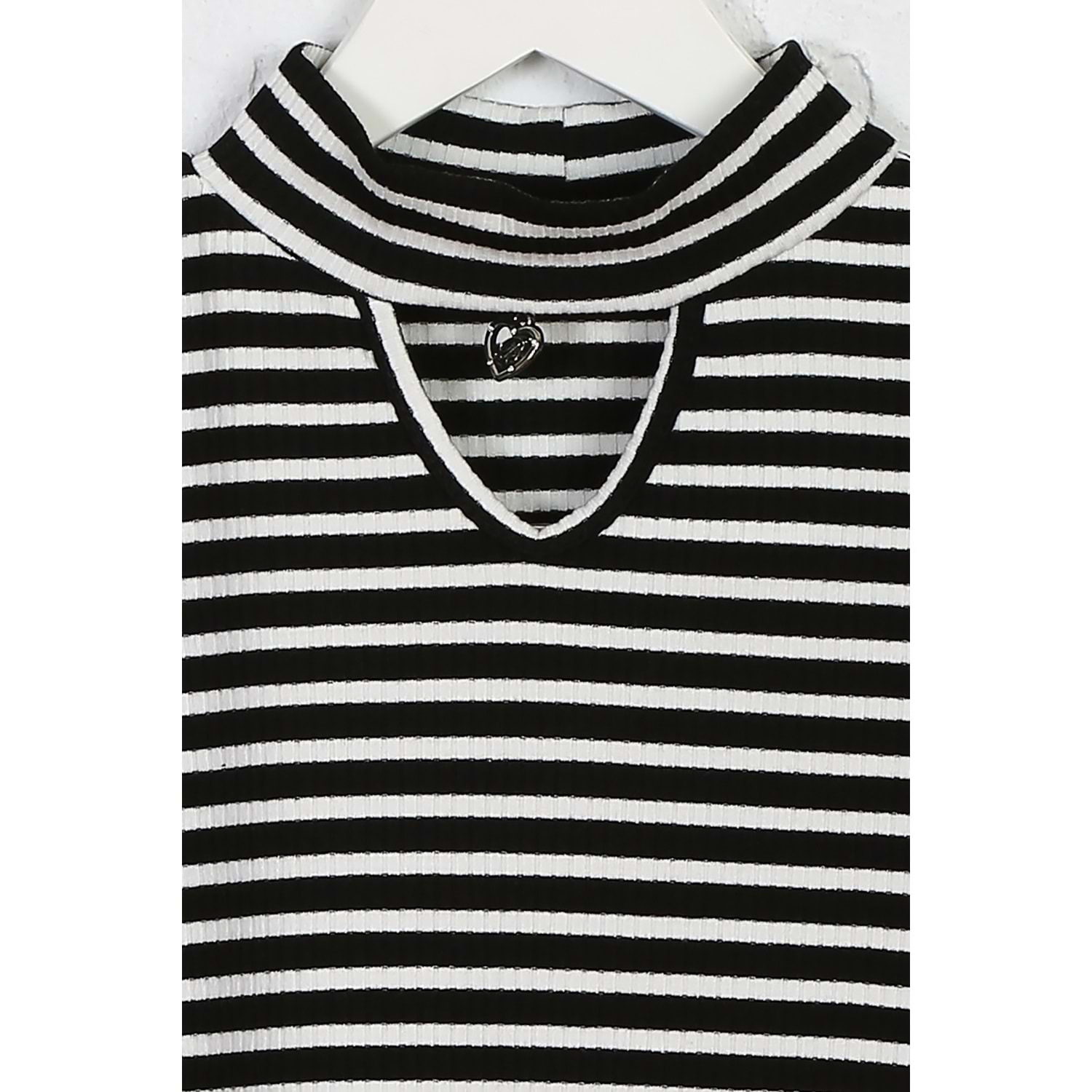 Kız Çocuk Tişört Metal Kalpli - Siyah-Beyaz (128/152)