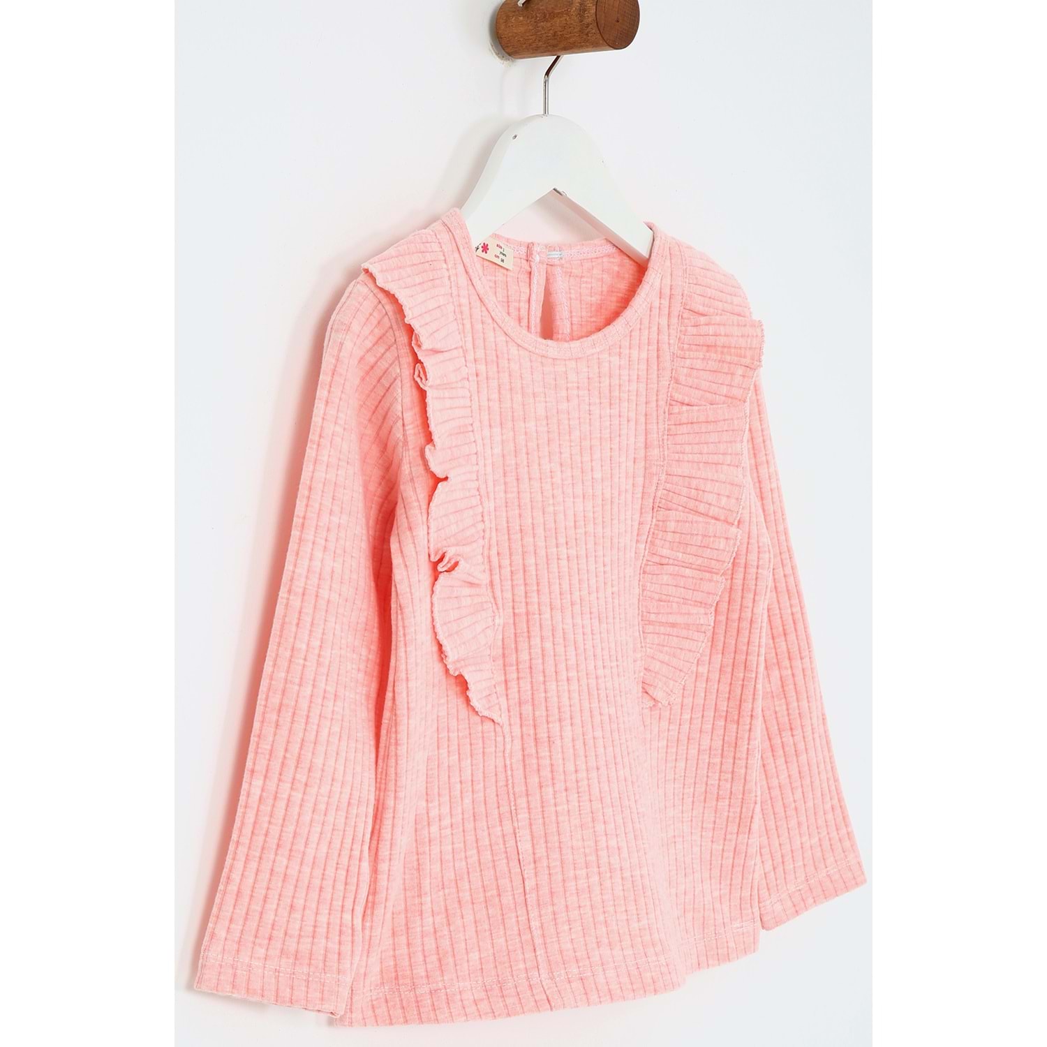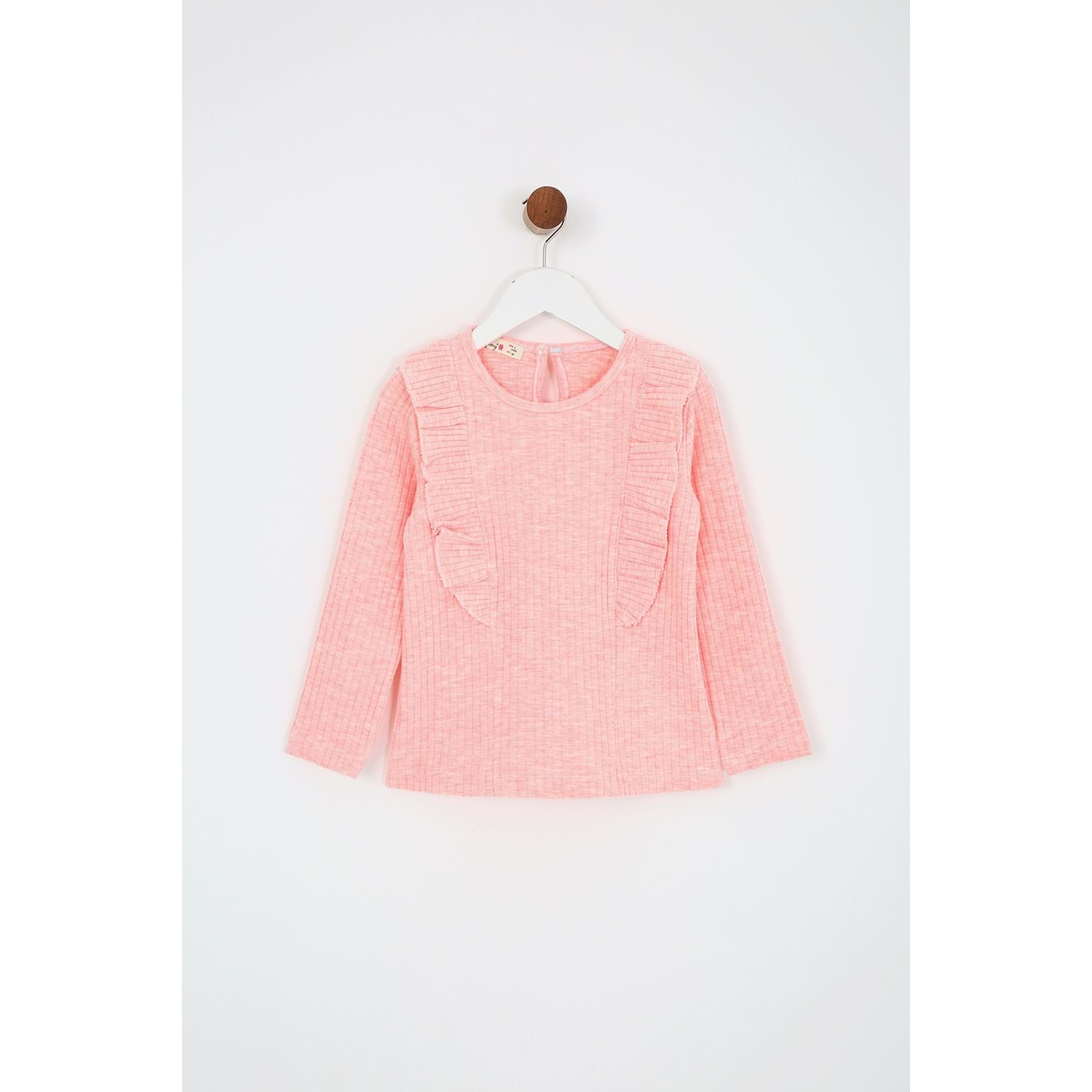 Kız Çocuk Tişört Parçalı Büzgülü - Pembe Melanj (98/122)